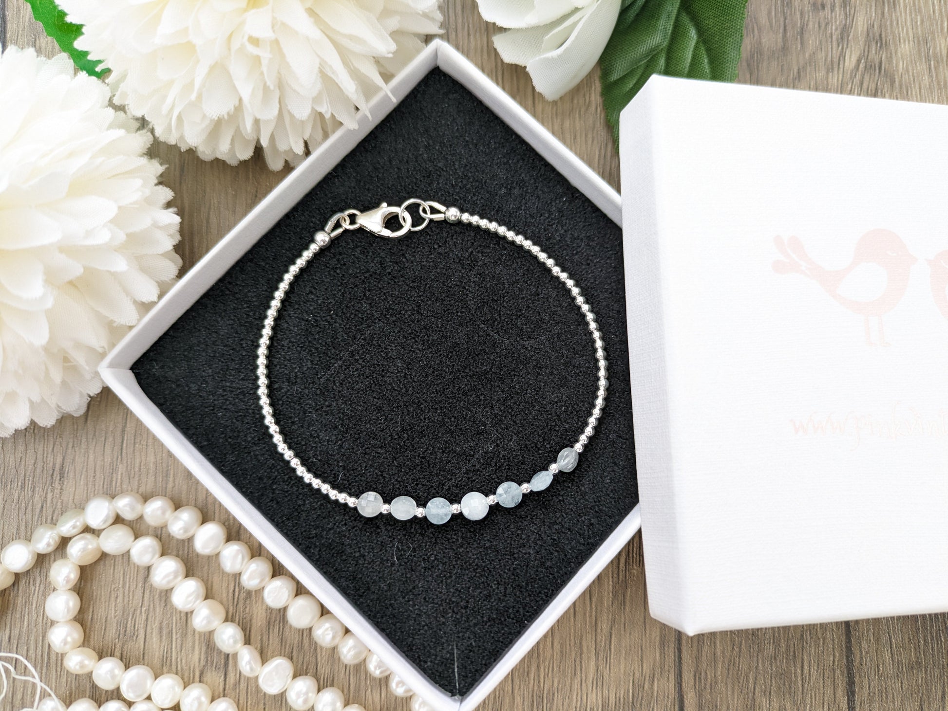 This aquamarine ankle bracelet features beautiful aquamarine coin gemstones and sterling silver beads. A lovely March birthday gift or a treat for yourself. To get the perfect fit, measure the slimmest part of your ankle with a tape measure then add half and inch to an inch.