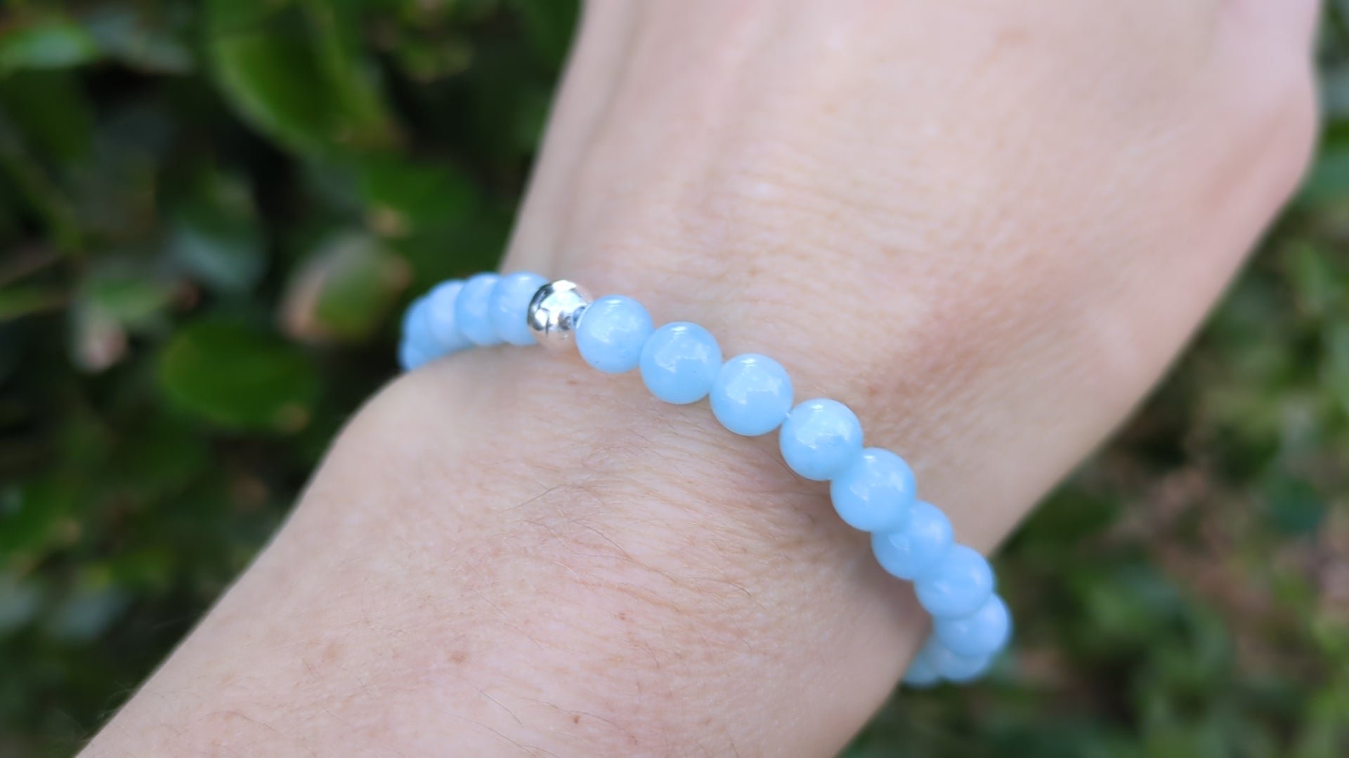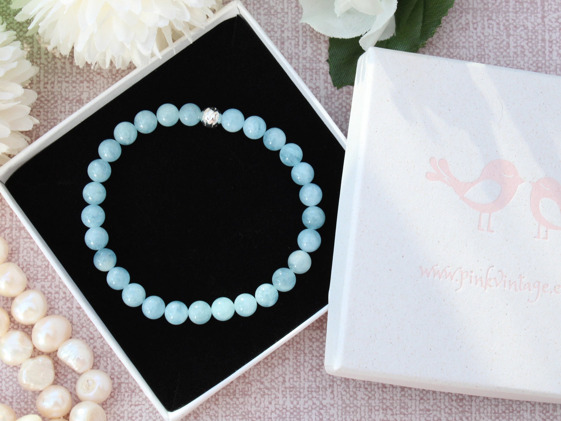 Celebrate a March birthday with this stunning aquamarine bead bracelet featuring a stylish sterling silver accent bead. Available in two sizes, 4mm and 6mm, it is the perfect gift to add some elegance and charm to any outfit. Make someone's birthday even more special with this beautiful present!
