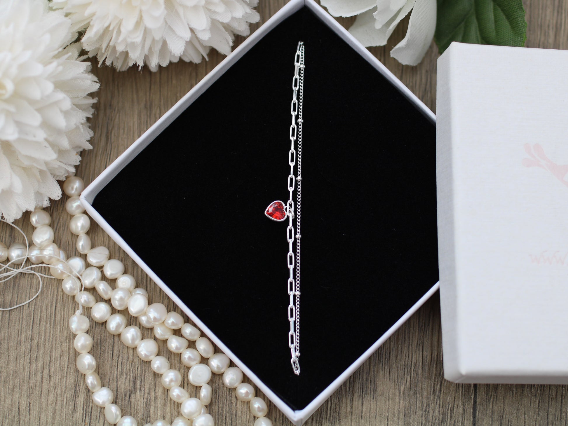 Designed as a perfectly balanced double layer, the Birth Month Crystal Layered Bracelet features two sterling silver chains secured with a single clasp and finished with a heart-shaped cubic zirconia crystal. Each bracelet is inspired by the traditional colour associated with a birth month, making it a meaningful piece to celebrate yourself or someone special. The layered design offers the look of a styled bracelet stack in one effortless piece — refined, timeless, and easy to wear every day. Made from sterling silver and featuring a sparkling cubic zirconia heart, this bracelet is designed for everyday elegance and durability. Welded for enhanced longevity.
