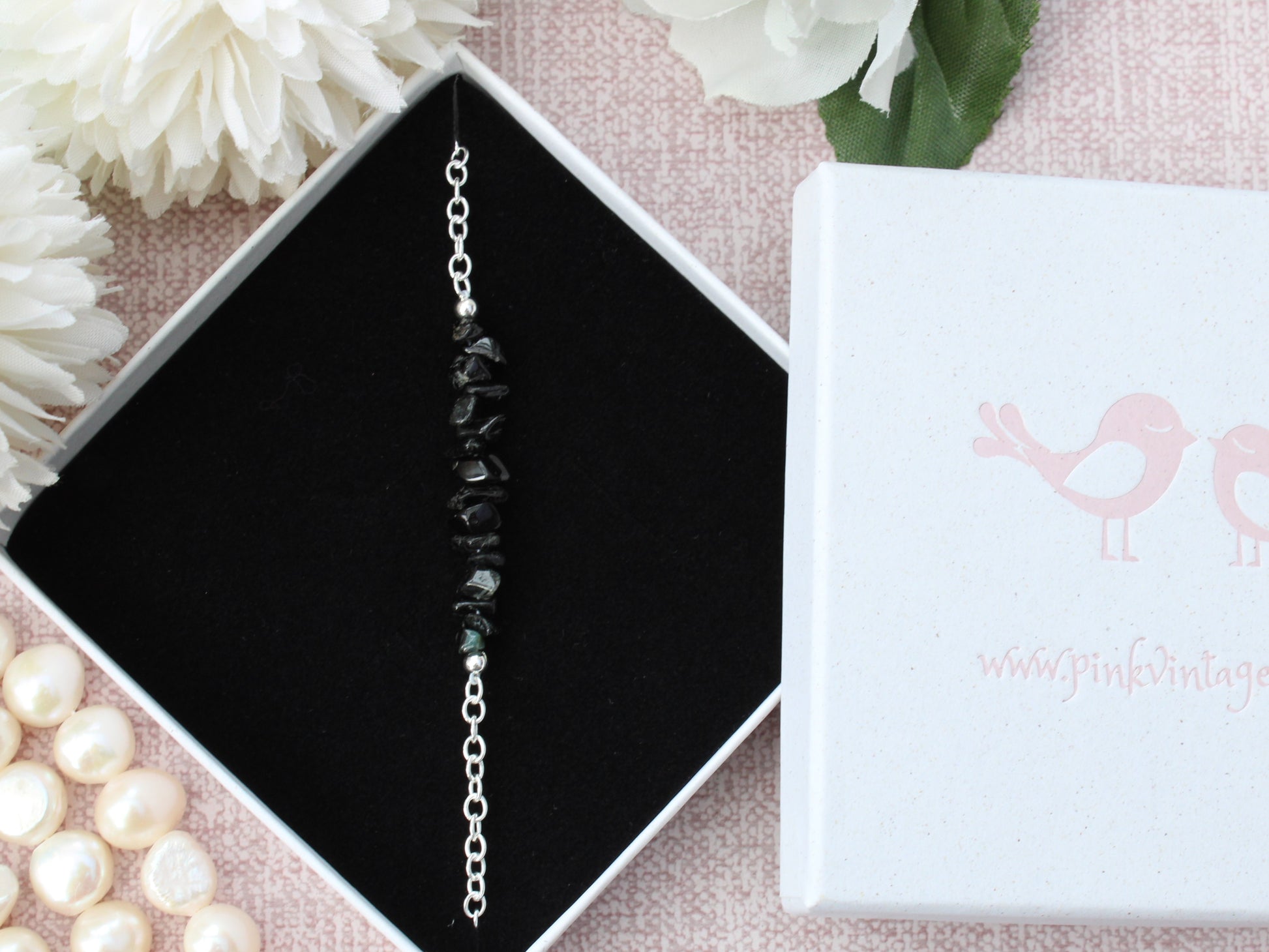 This adjustable bracelet features raw black tourmaline gemstones attached to a sterling silver chain. Celebrate your October birthday with the beautiful and powerful protective energy of black tourmaline. Stay grounded and balanced with this unique birthstone bracelet.