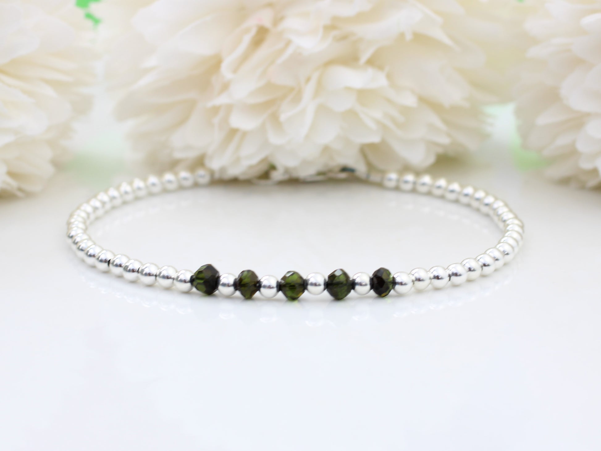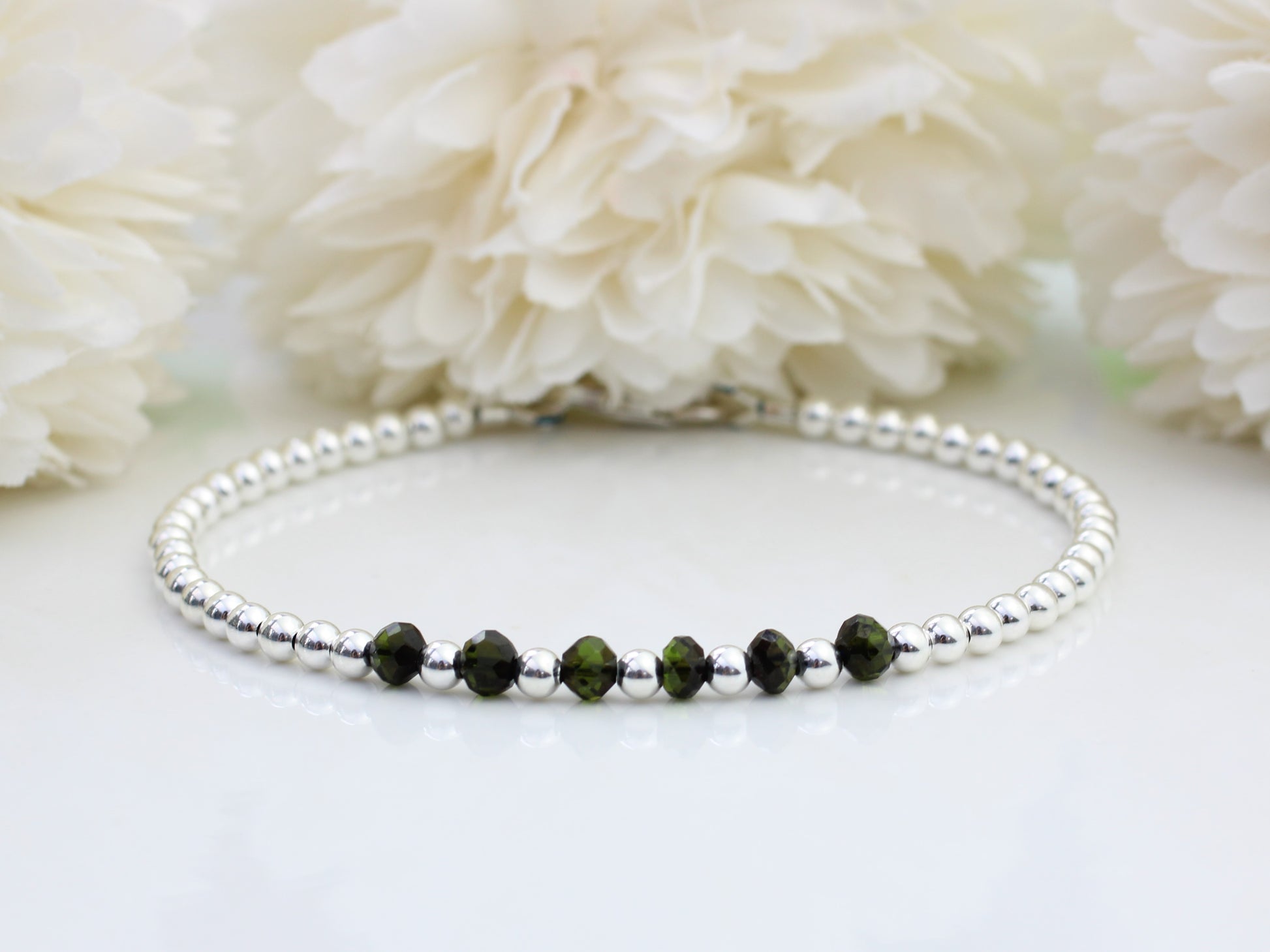 Black tourmaline milestone bracelet in sterling silver.
