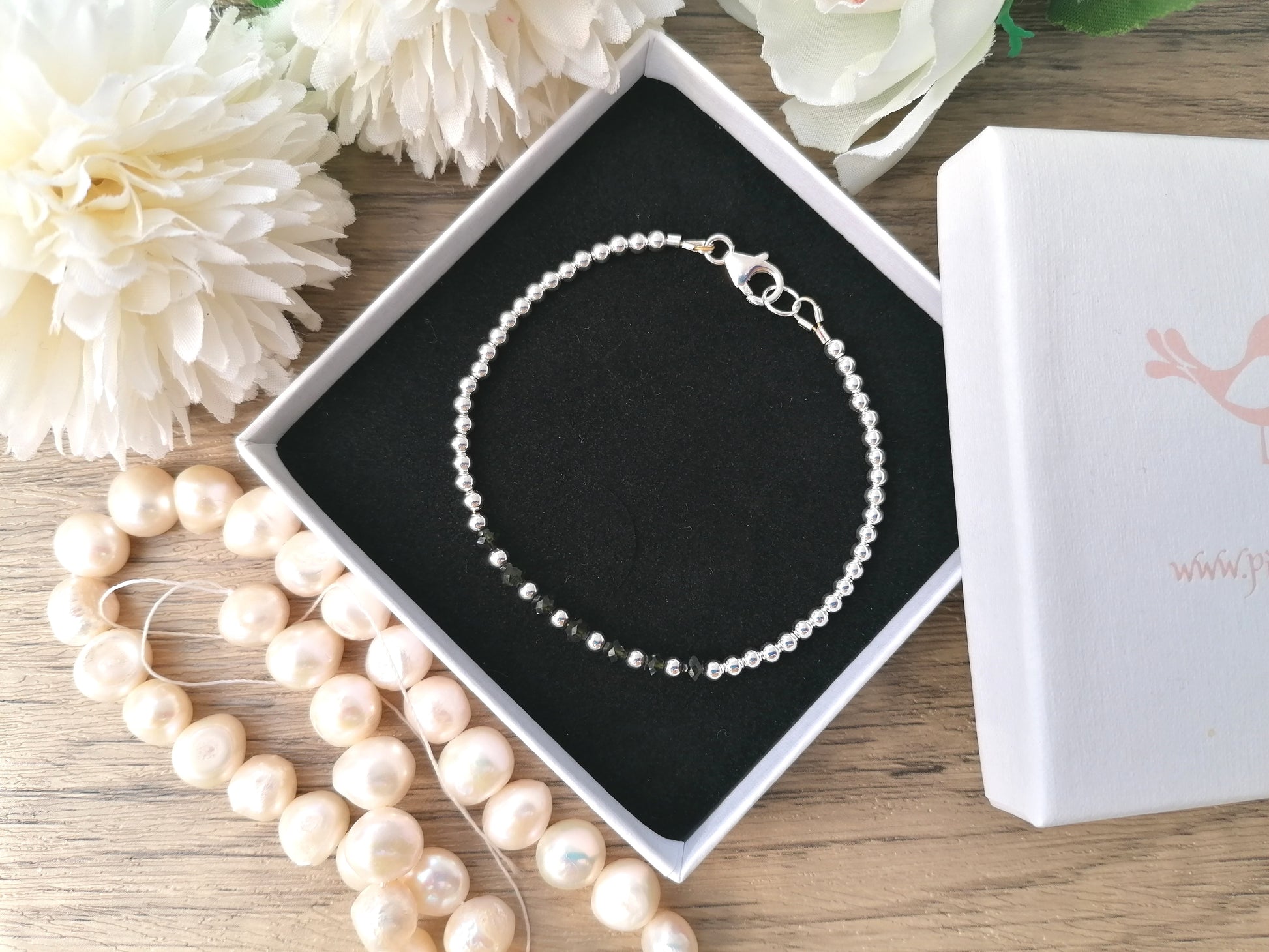 This bracelet is expertly handcrafted using faceted black tourmaline gemstones, with each bead representing a decade. The gemstones are elegantly complemented by sterling silver beads and finished with a sterling silver clasp. To add a personal touch, the bracelet can be customised with a sterling silver heart tag featuring your choice of initial, number, or zodiac sign.