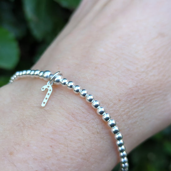 Celebrate the holiday season with our candy cane charm bracelet! Made of high-quality sterling silver, this bracelet features a stunning candy cane charm and accompanying beads. It's the perfect unique gift to wear and spread holiday cheer on Christmas day.