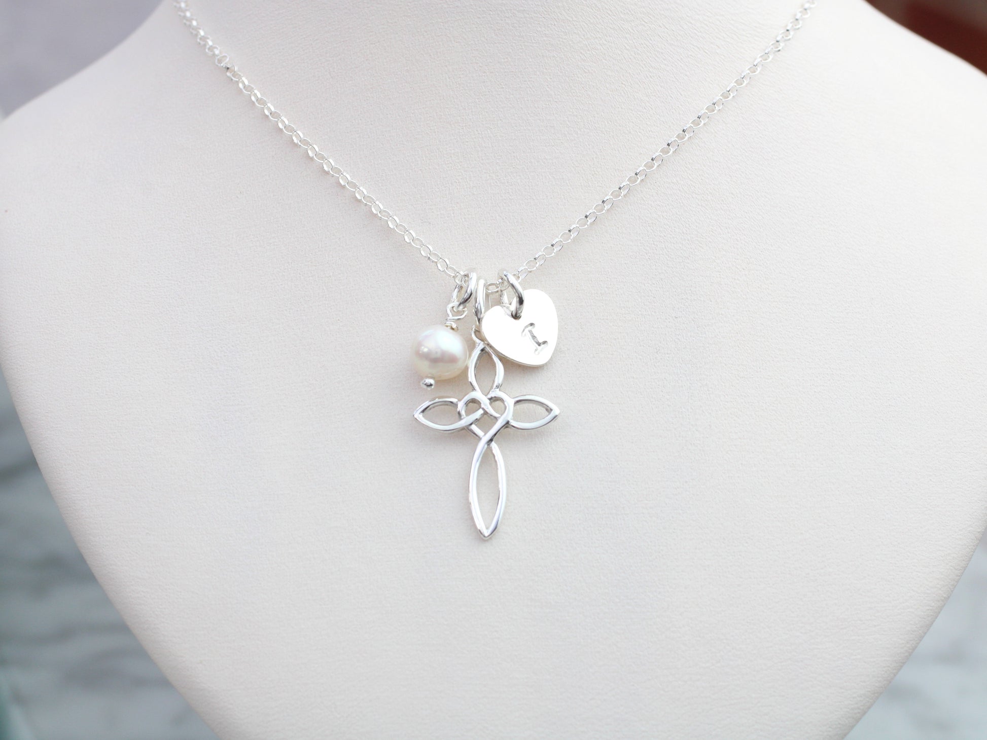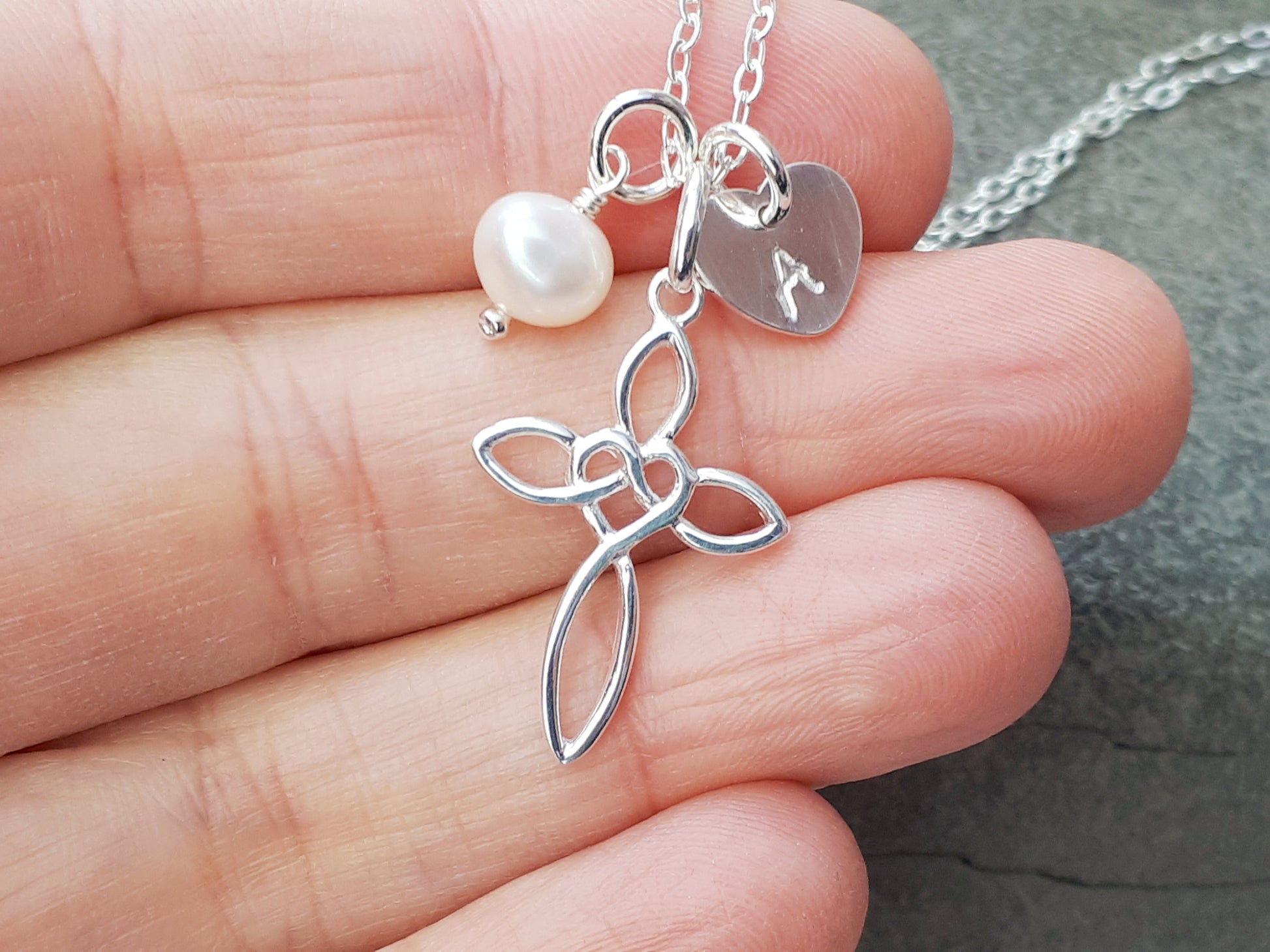This childrens cross necklace can be personalised with any initial, making it the perfect gift for a child's confirmation or another special occasion. The addition of the freshwater pearl adds a touch of elegance to this simple and meaningful piece of jewellery. Show your support and love with this personalised necklace.