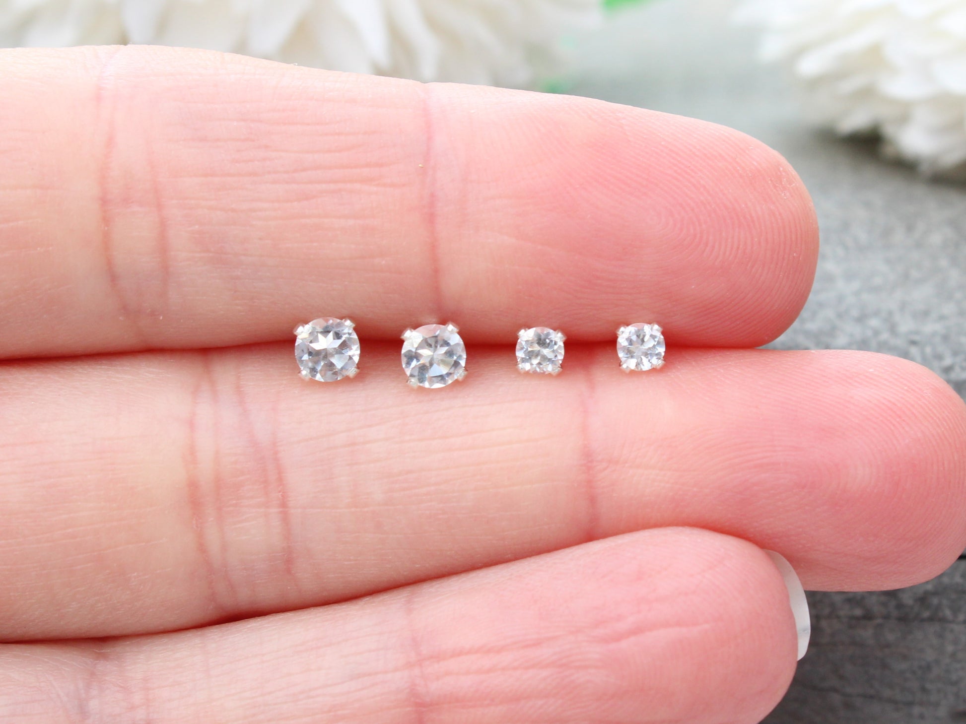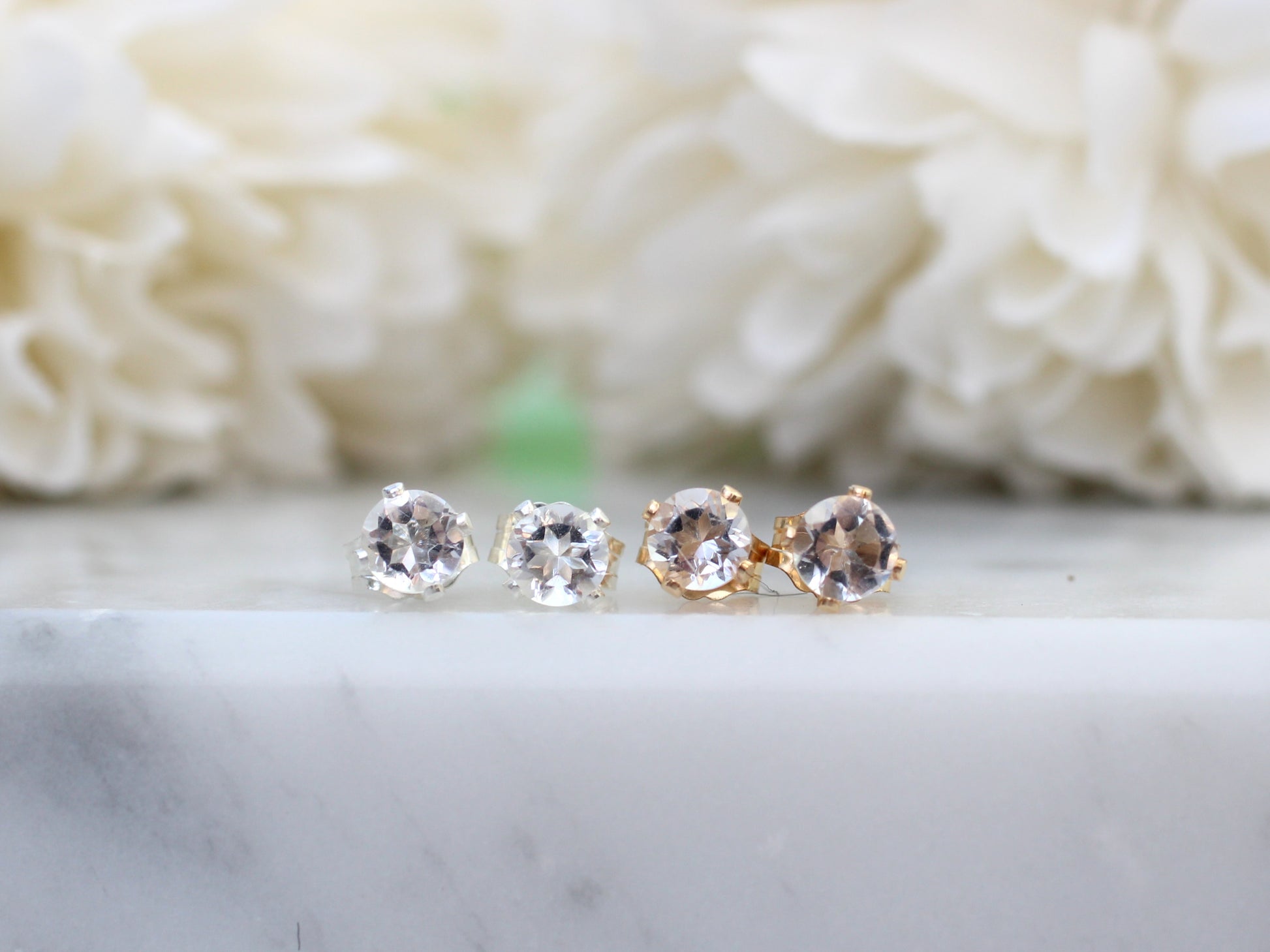 Clear quartz stud earrings in sterling silver or gold.