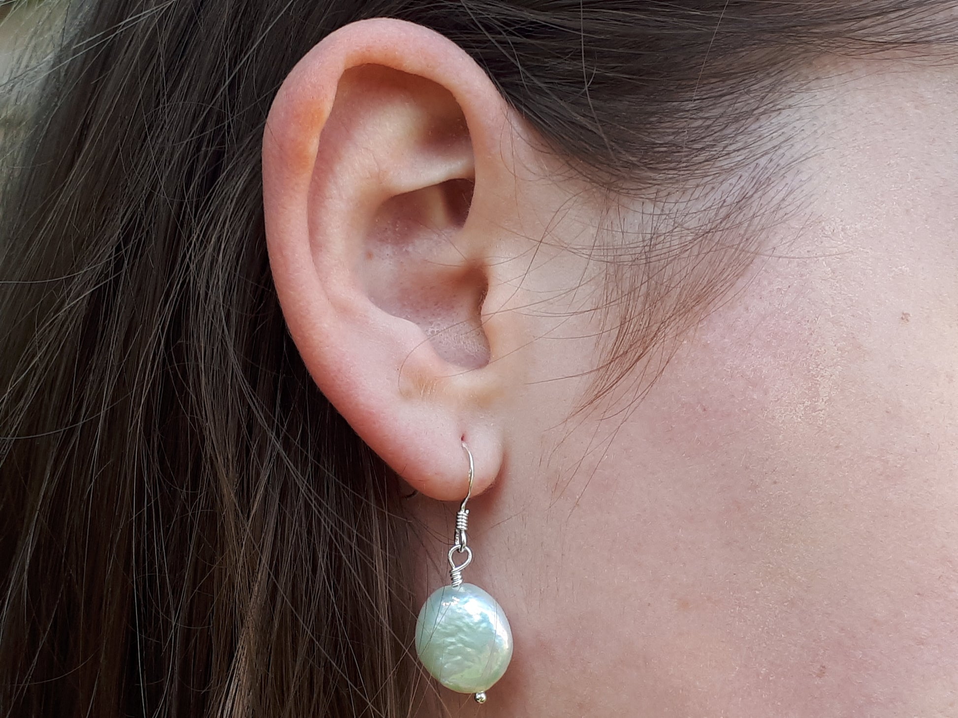 Add a touch of elegance with our coin pearl earrings. These natural pearls are set into sterling silver or gold-filled metal, making them perfect for any occasion. Upgrade to our optional gift box for a thoughtful present. Celebrate a June birthday with the birthstone of the month. We have a matching coin pearl necklace to compliment these earrings beautifully.