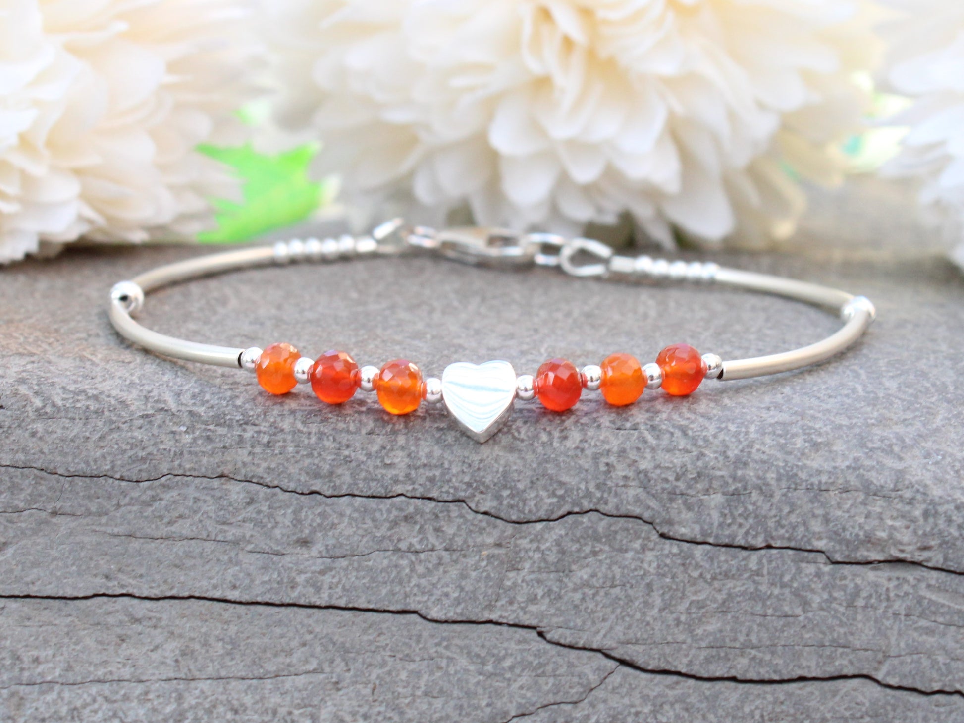 Carnelain bracelet sterling silver with optional personalised initial tag. July birthstone bracelet.