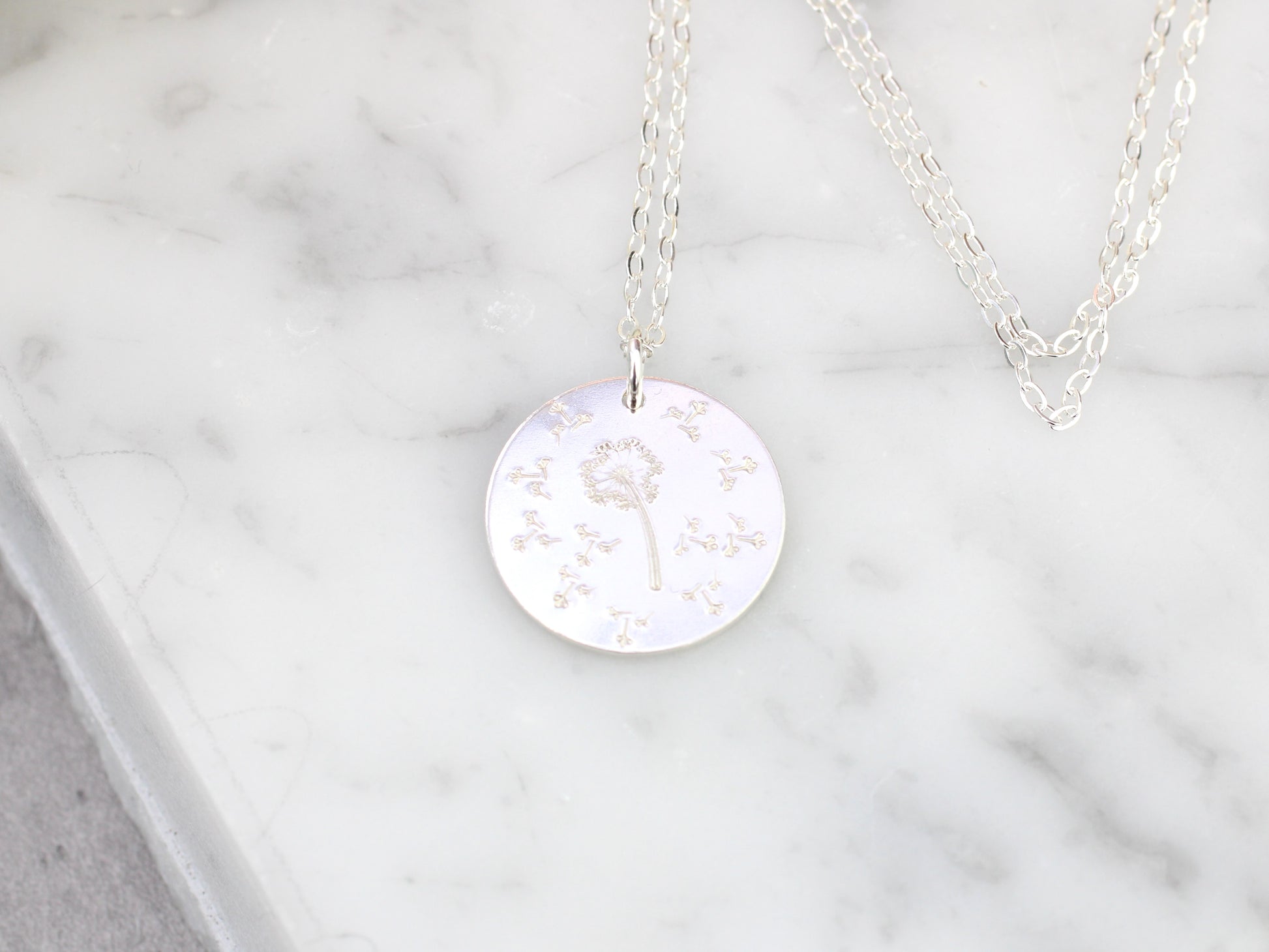 Make your wish come true with our hand-stamped dandelion and fluff necklace. Crafted from solid sterling silver, this necklace is the perfect accessory for any outfit. Let the dandelion remind you to never stop dreaming and reaching for your goals. A thoughtful and meaningful gift for yourself or a loved one. If you would like to see this dandelion and fluff necklace being made, please click on the link to be taken to our YouTube channel. NO returns on sale items.