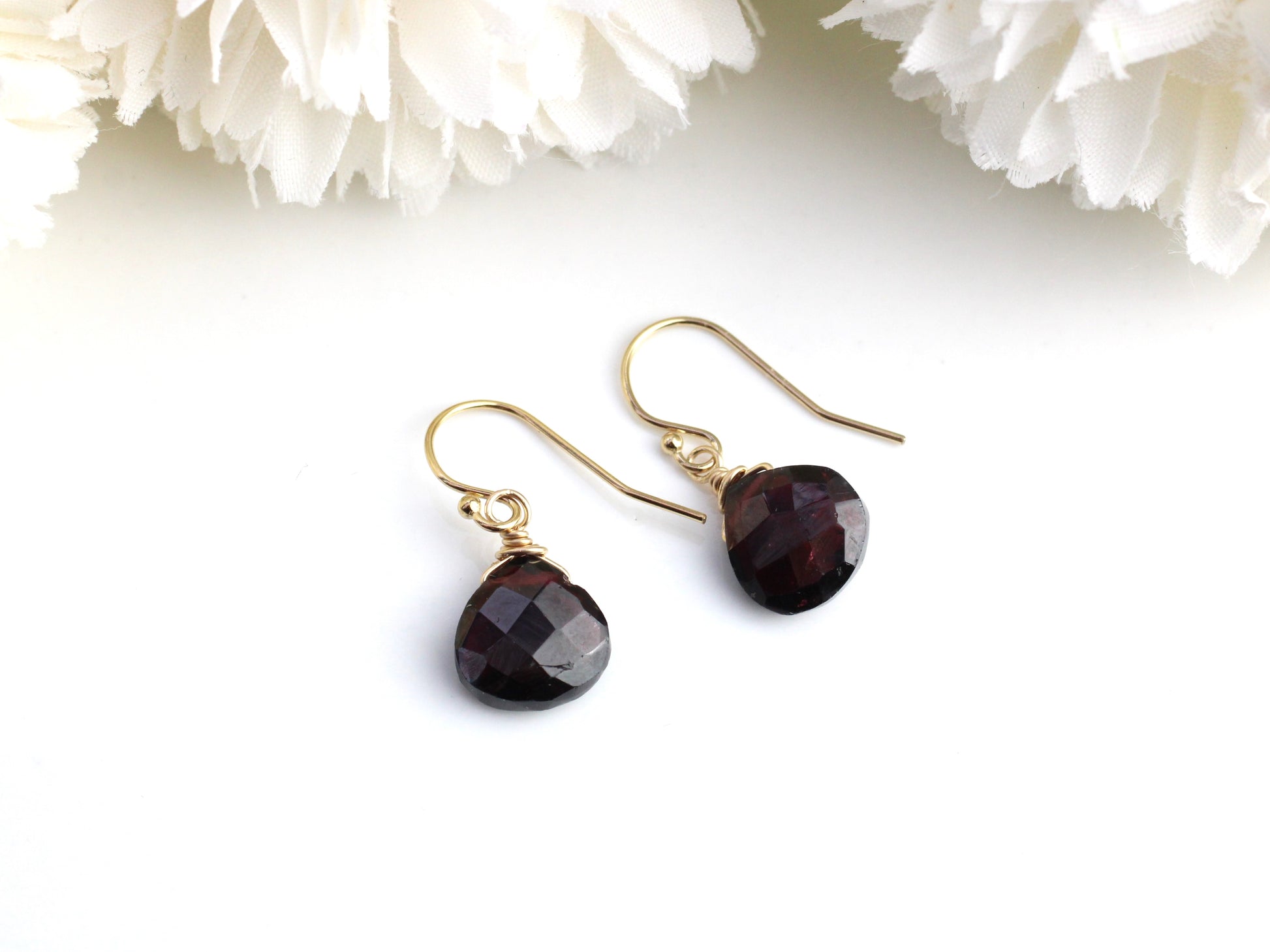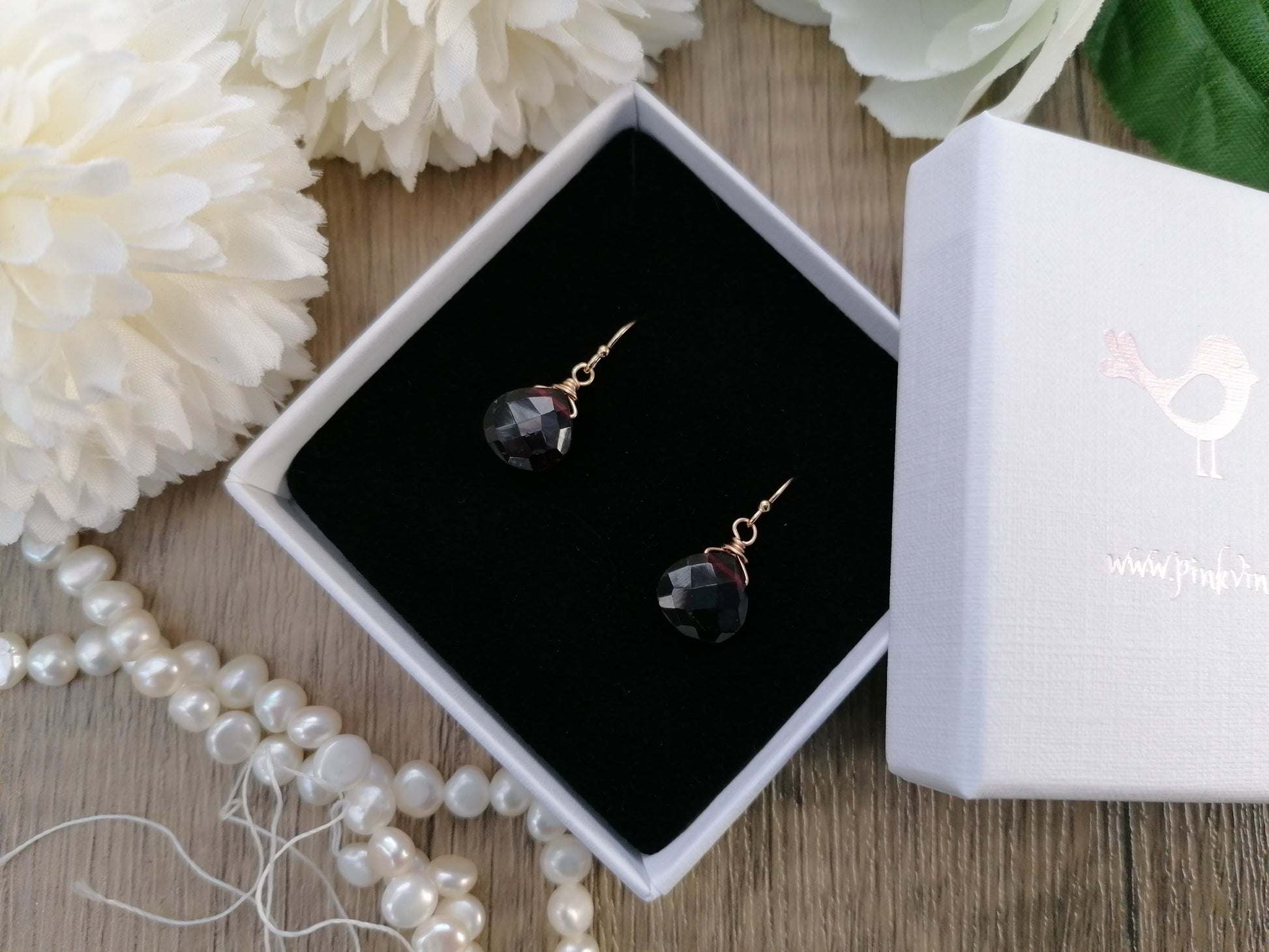 Introducing our beautiful garnet earrings, perfect for those looking for a January birthstone gift. These earrings feature a stunning garnet briolette gemstone, set into gold filled metal.