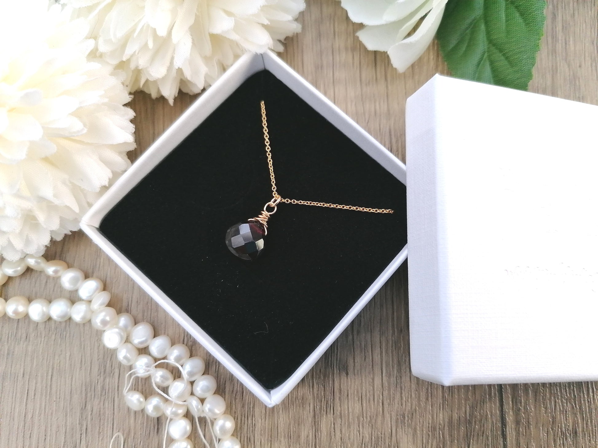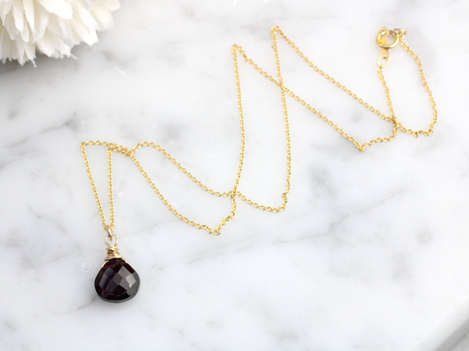 This unique garnet briolette necklace crafted from sterling silver is the perfect January birthstone necklace.