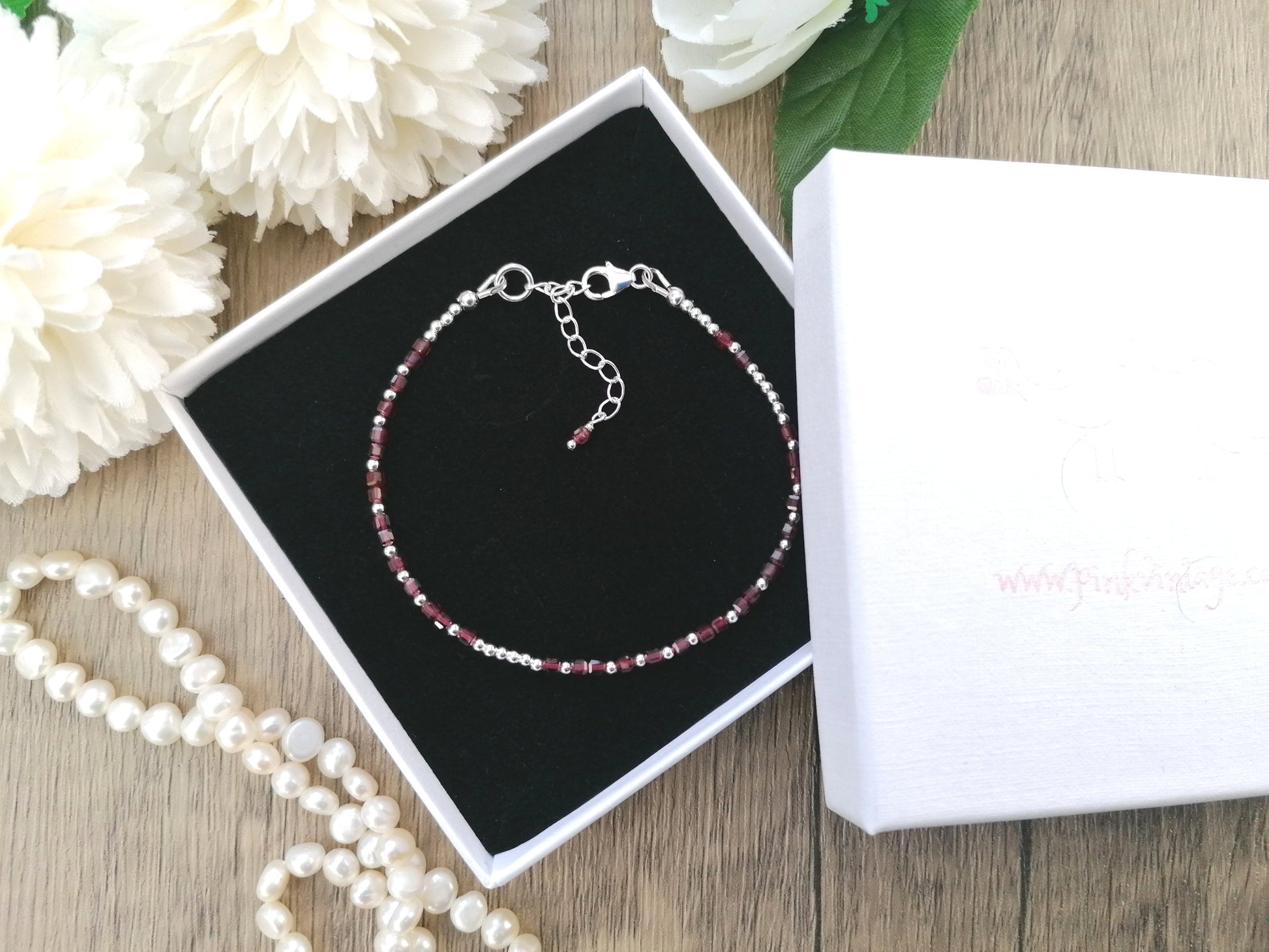 This hidden message bracelet is the perfect gift for your loved one. The deep red garnet stones signify passion and commitment, while the sterling silver cube beads add a touch of elegance. This bracelet is also a subtle yet meaningful way to say "I love you" in Morse code. A stunning gift for her.