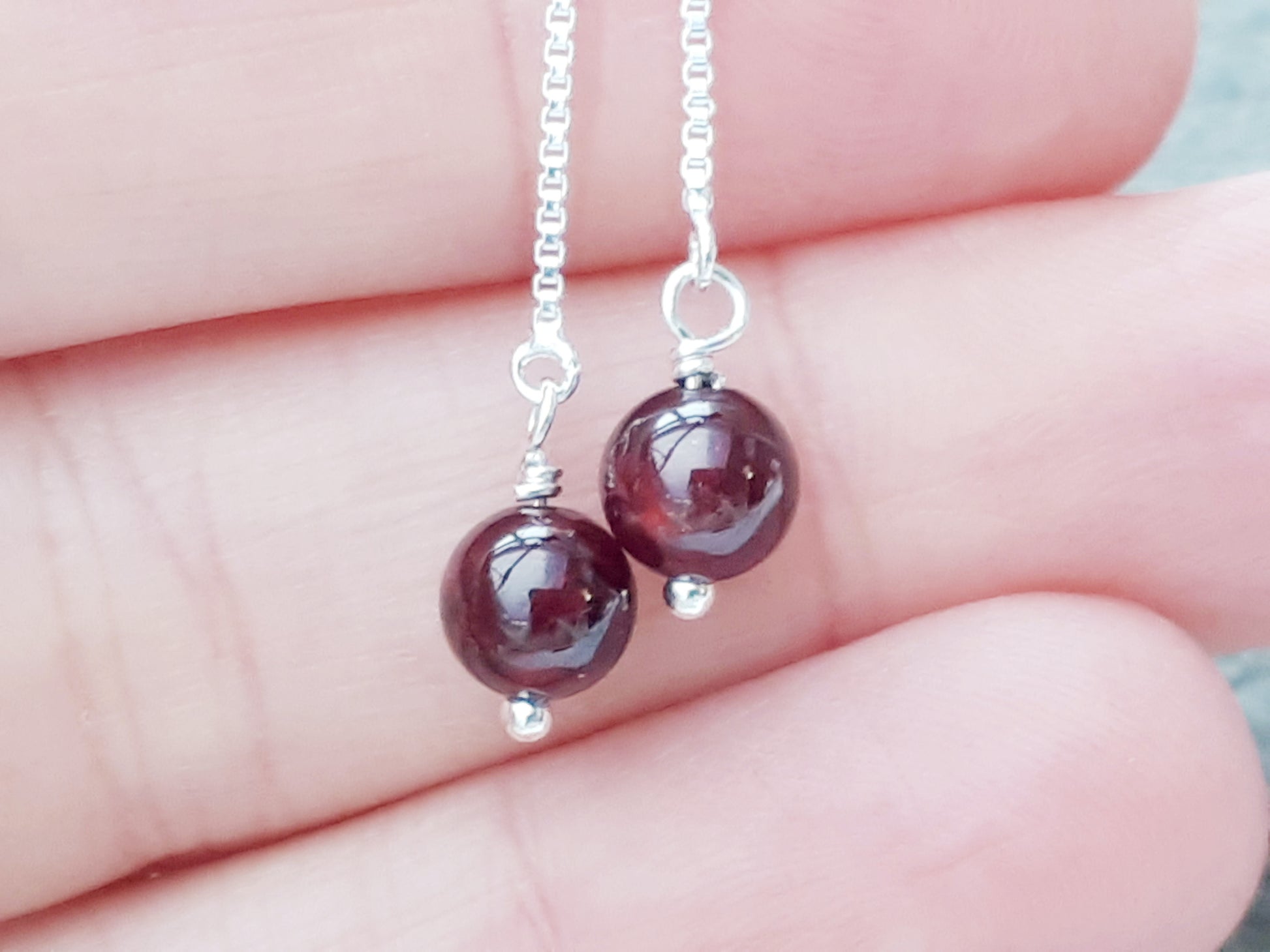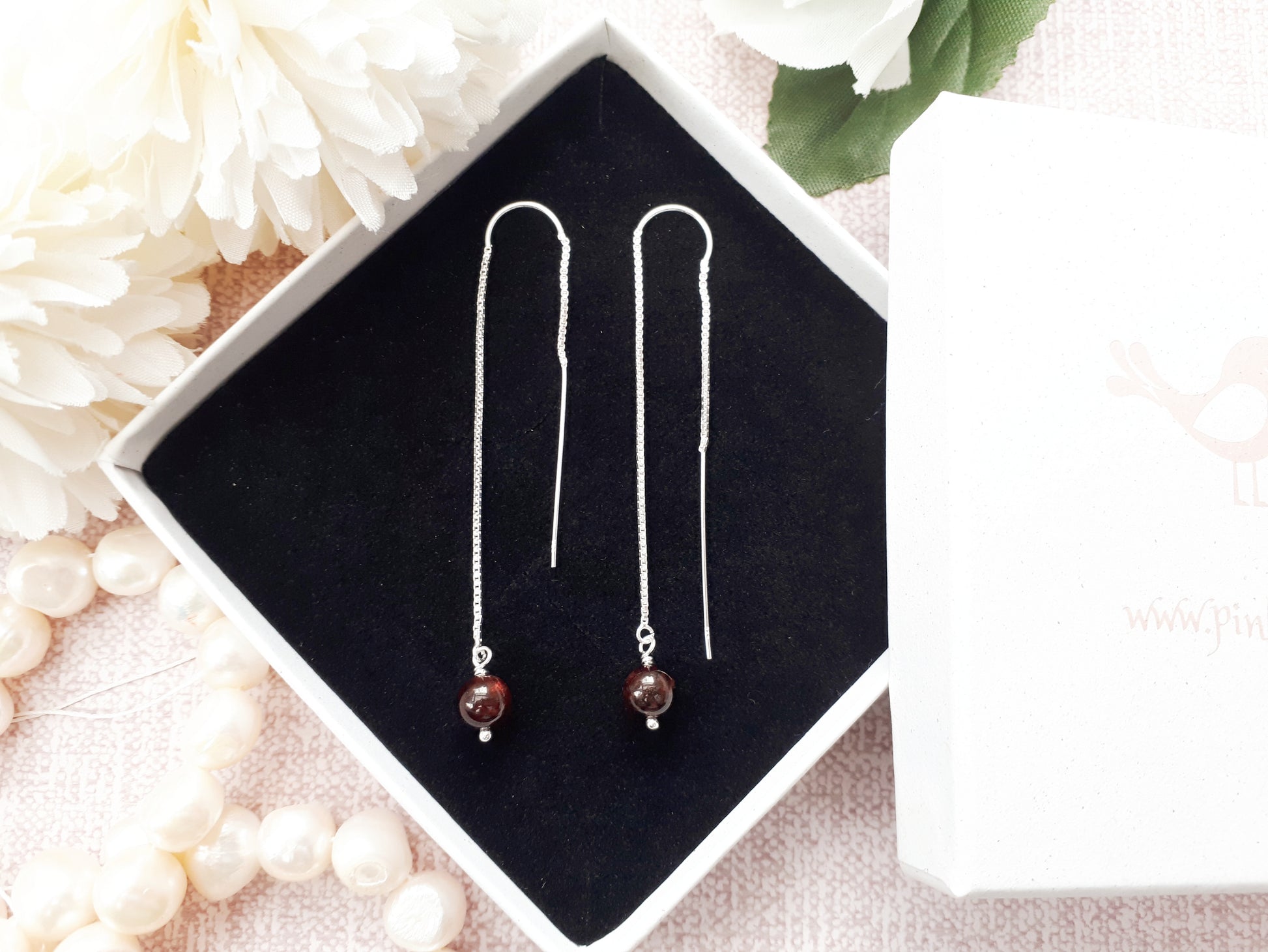 Add a touch of elegance to your look with our garnet threader earrings. Made of high-quality sterling silver, these January birthstone earrings feature a beautiful garnet bead. Perfect for any occasion, they make a timeless addition to your jewelry collection.