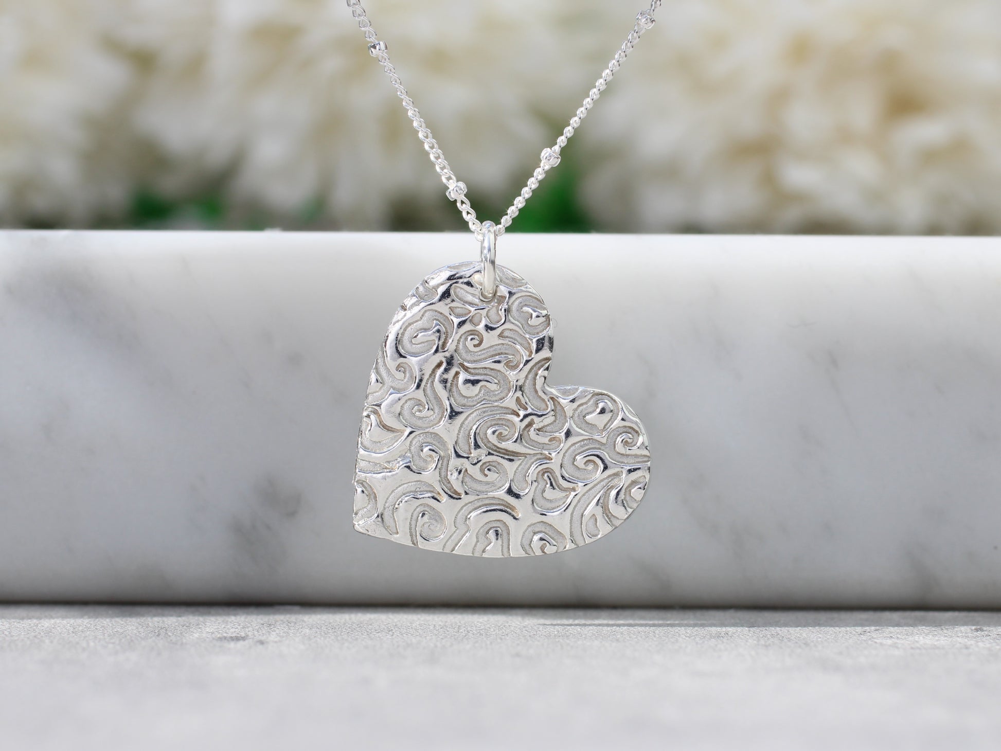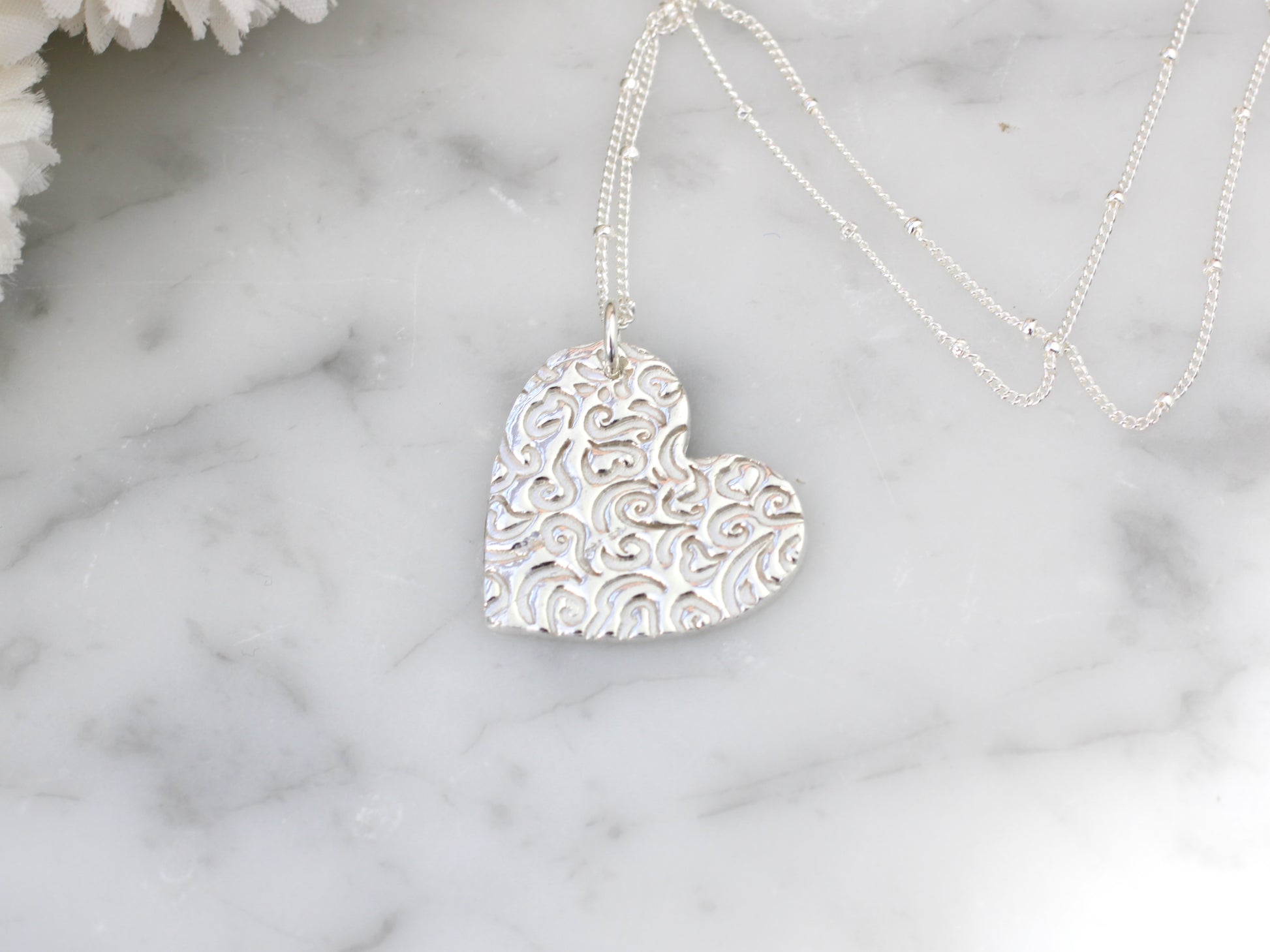 Looking for a special gift for a special someone? Look no further! Our pure silver heart pendant necklace is perfect for any special occasion.- birthdays, anniversaries, Valentine's Day, or even simply to treat yourself with a little self-love. It is available in 3 different sizes and also has matching silver heart earrings to complete the look. Show your love and appreciation with this beautiful and meaningful necklace.