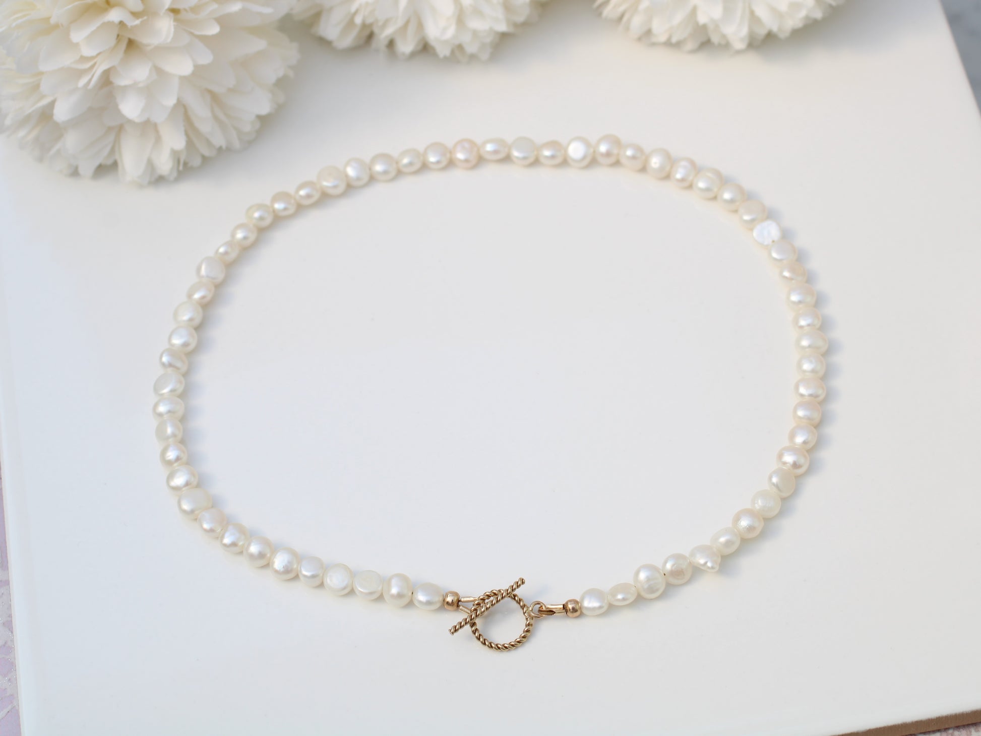 Fall in love with our exquisite Pearl Choker Necklace! It's the perfect accessory for any occasion, made with lustrous freshwater pearls and a stunning twisted gold-filled clasp. Celebrate June birthdays with this timeless and elegant piece! The model is a slim teen and wearing a 14-inch necklace.