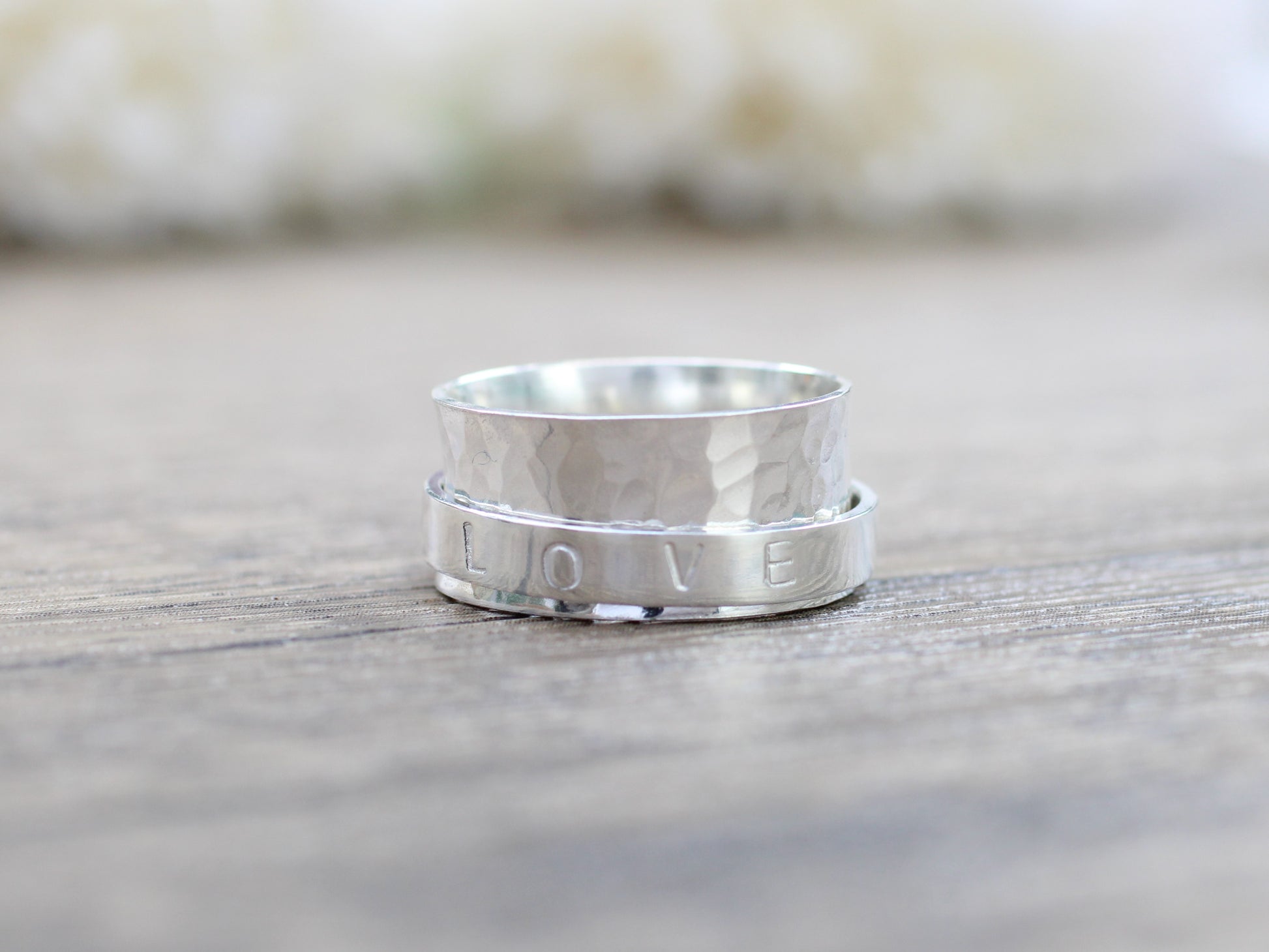 Personalised LOVE spinner ring. Size Q UK 8 USA. Ready to ship.