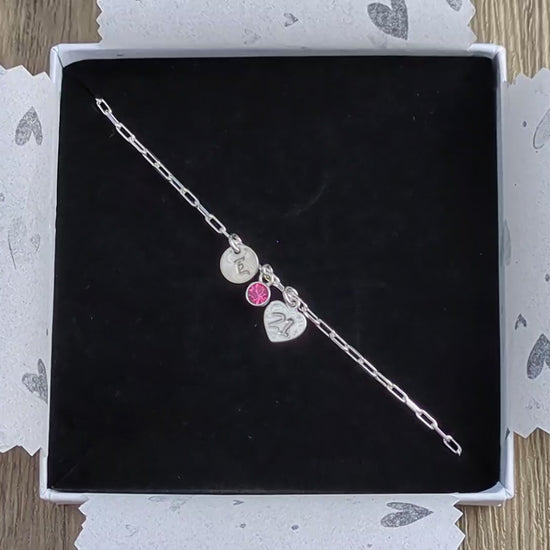 Create a truly bespoke keepsake with this sterling silver personalised birthday bracelet. Select the milestone age, add an initial charm, and choose the perfect birthstone to commemorate a special birthday. The welded links provide extra security and a lifetime of wear. Each bracelet arrives in a beautiful jewellery box with your own personal message, making it a perfect gift for milestone celebrations from 13th to 70th birthdays. Buy yours today!