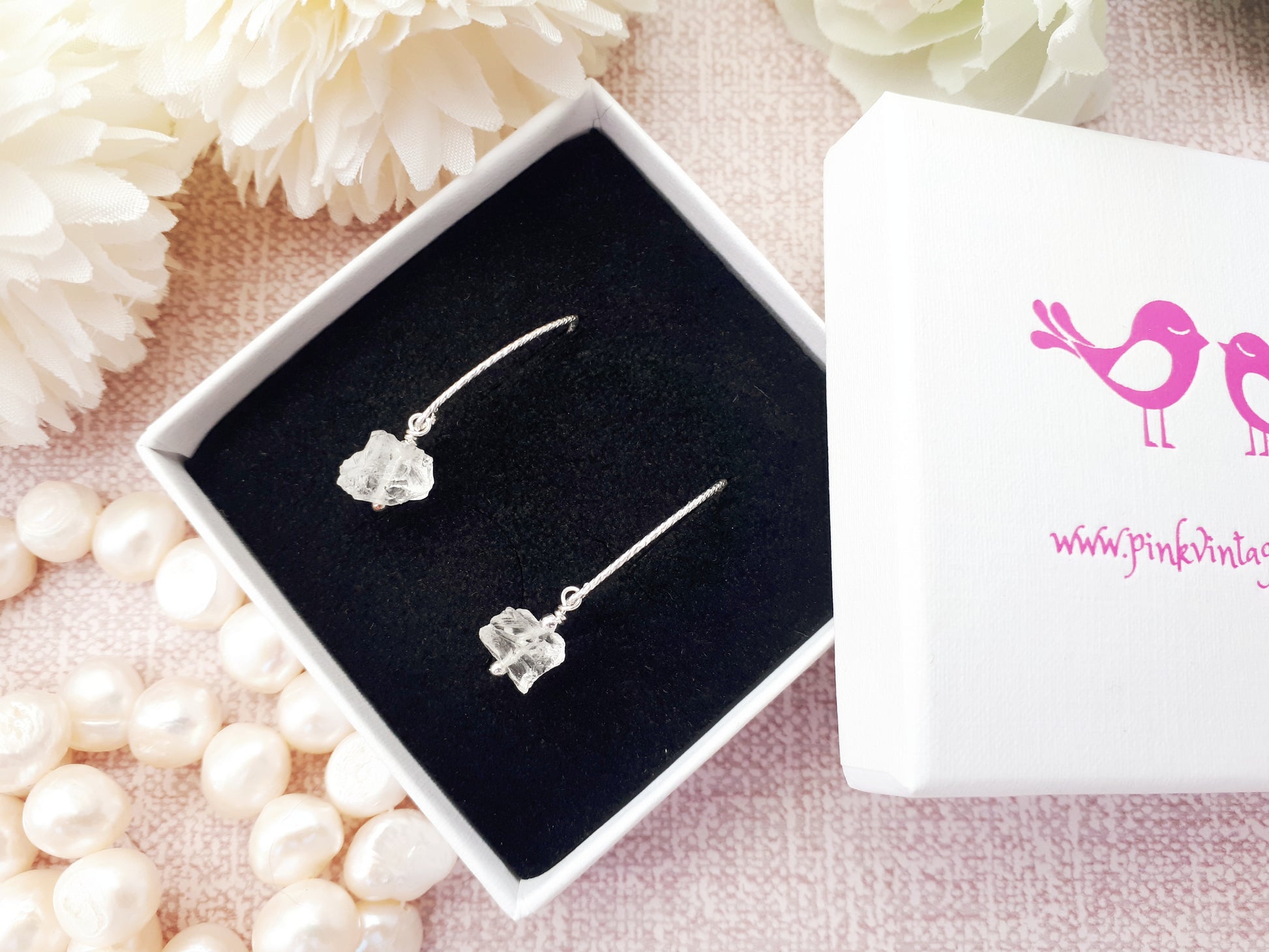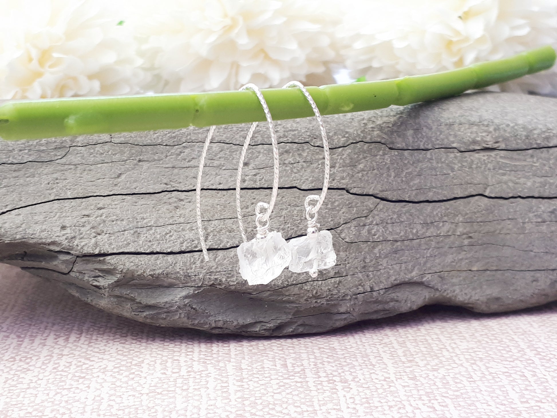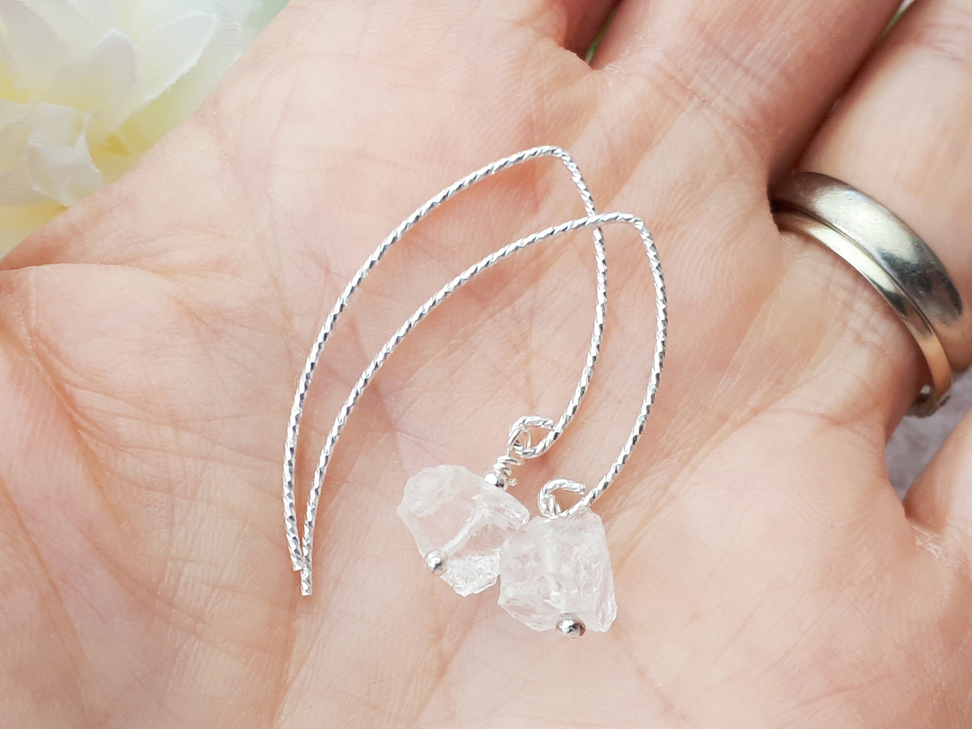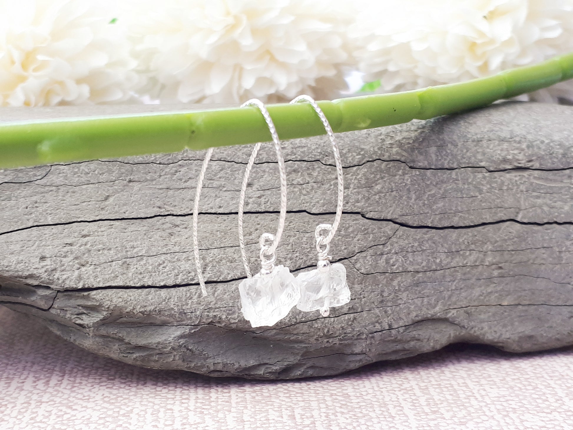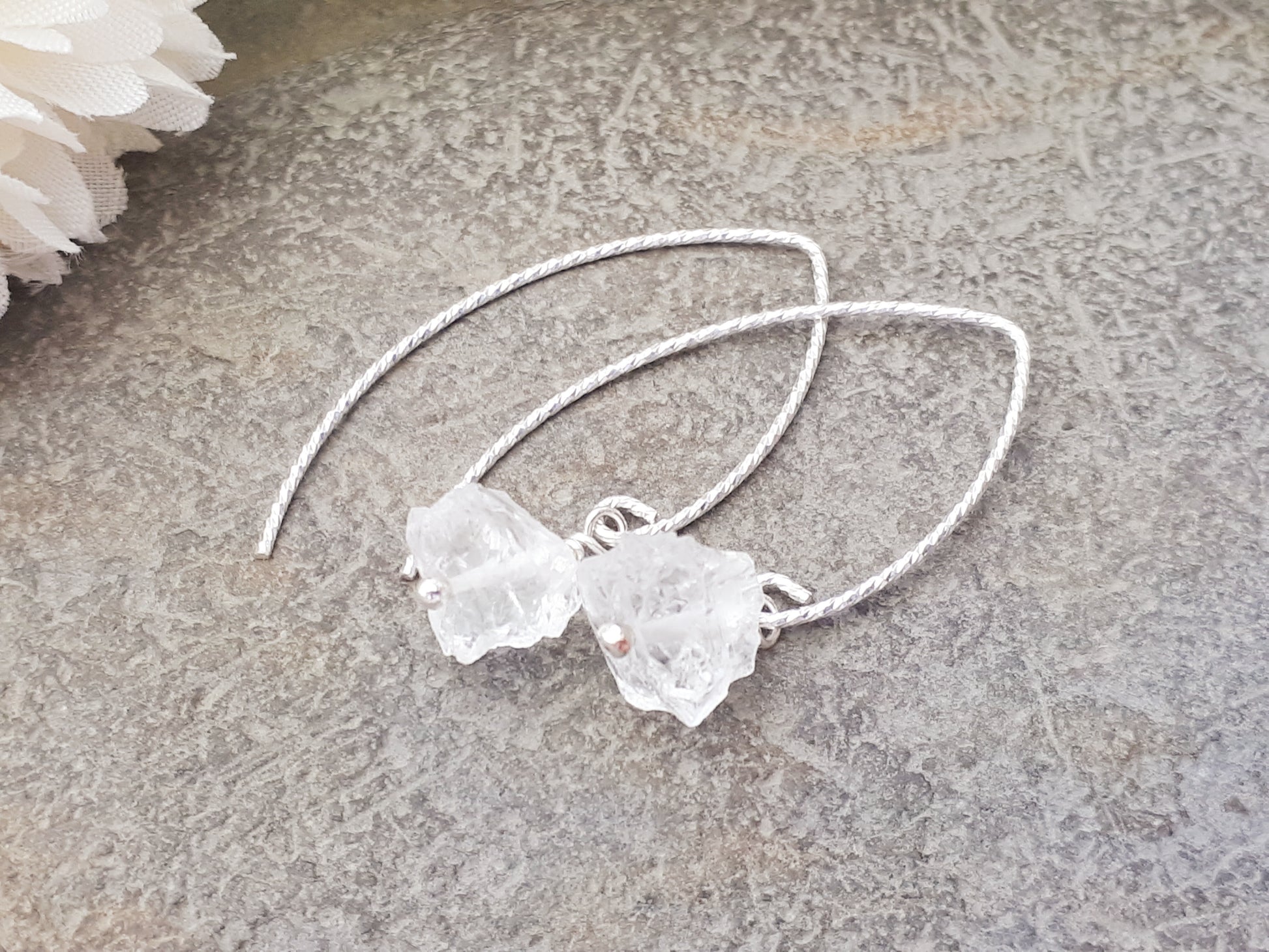 Add a touch of natural beauty to your look with our raw quartz earrings in sparkling sterling silver. These earrings feature the April birthstone, making them the perfect gift for any birthday girl. Elevate any outfit with these unique and elegant earrings.