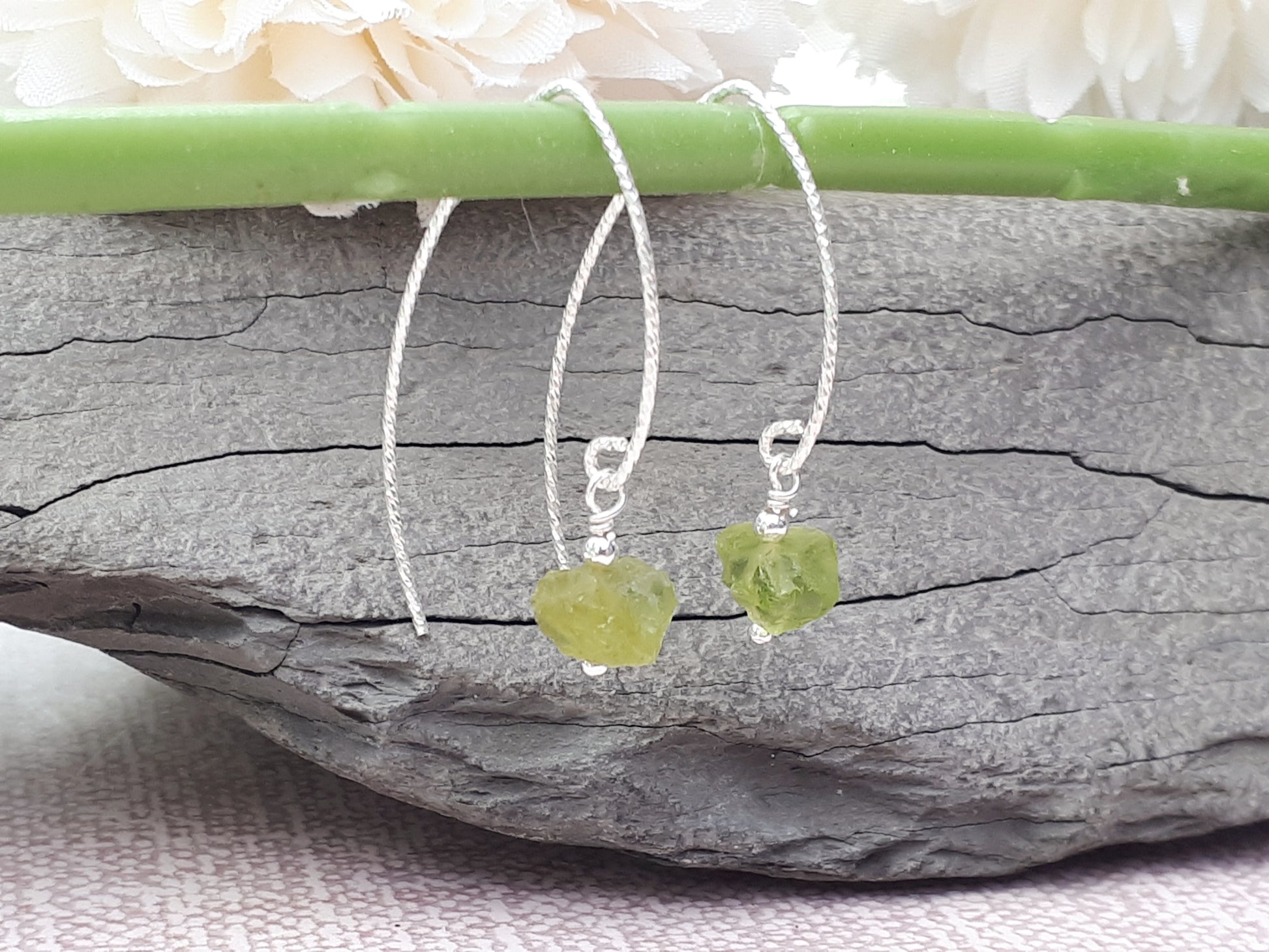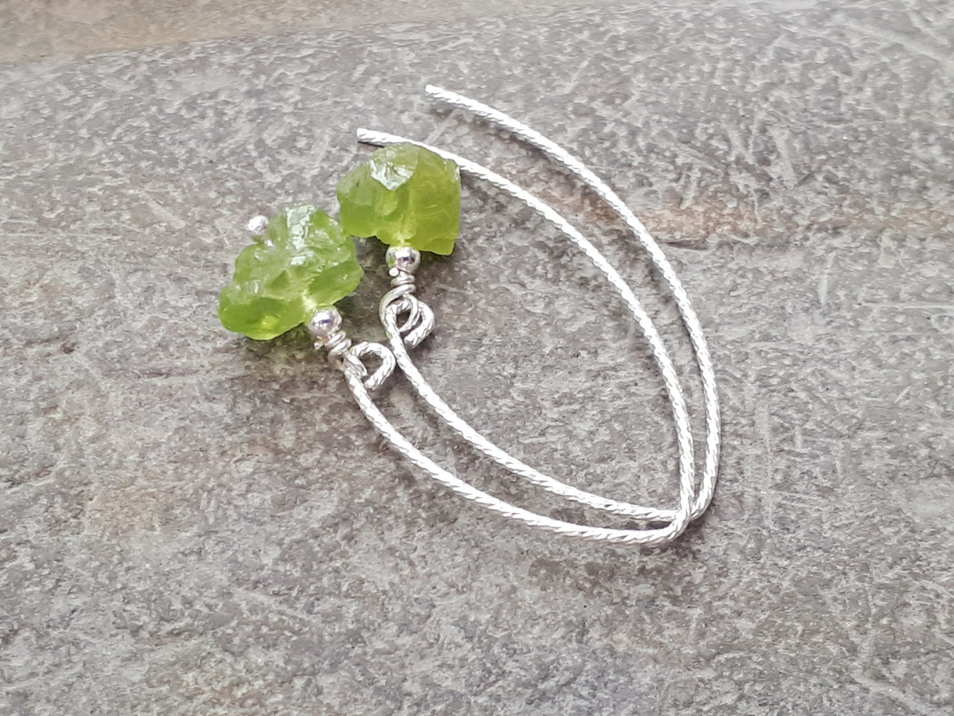 Raw peridot earrings in sterling silver.