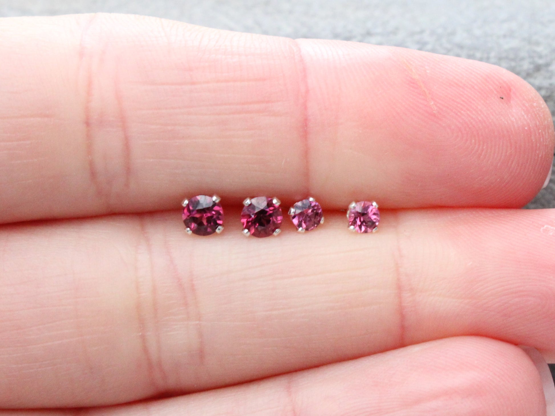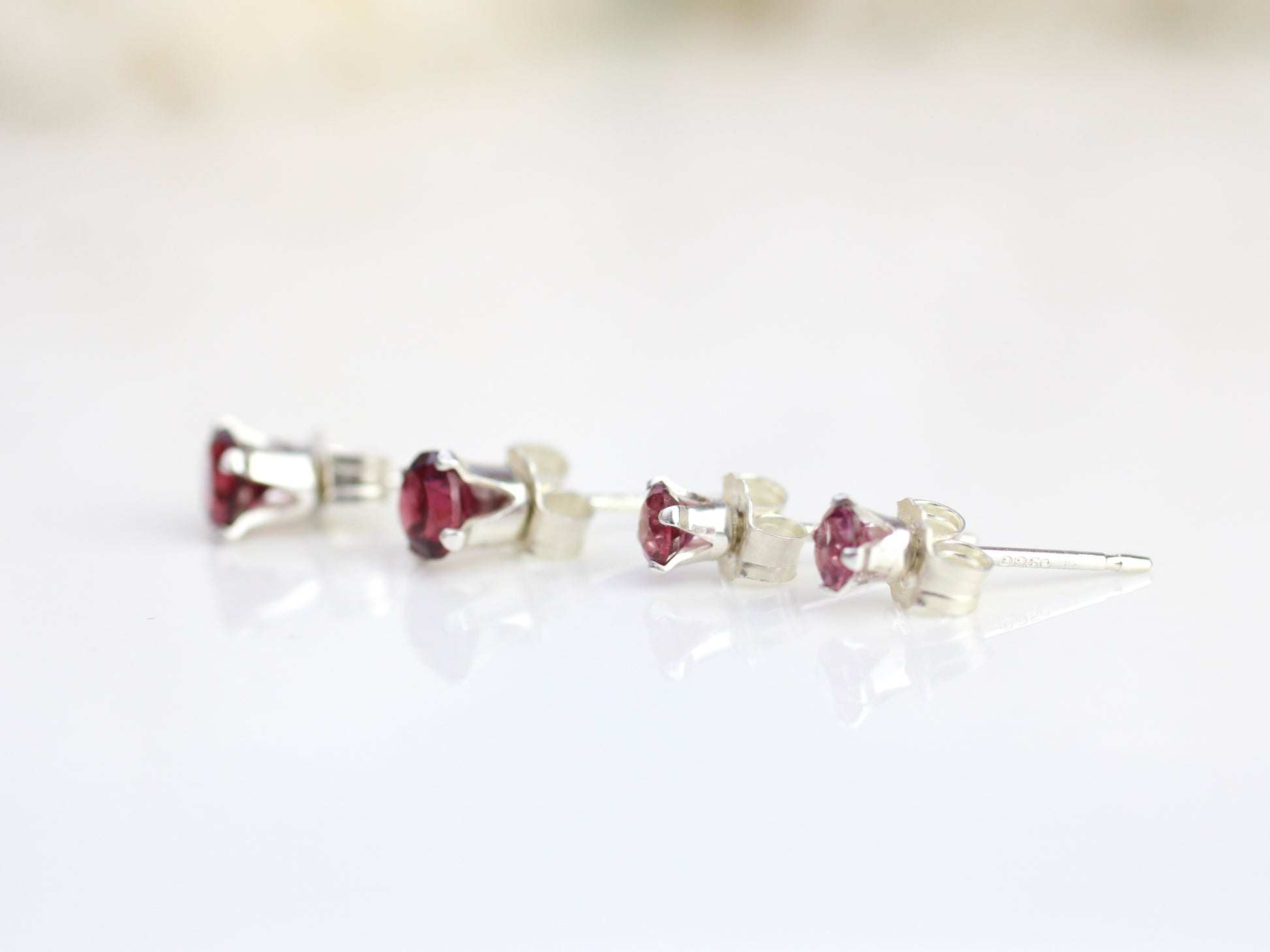 Rhodolite garnet stud earrings in sterling silver. Please note there are no returns or resizing on sale items.