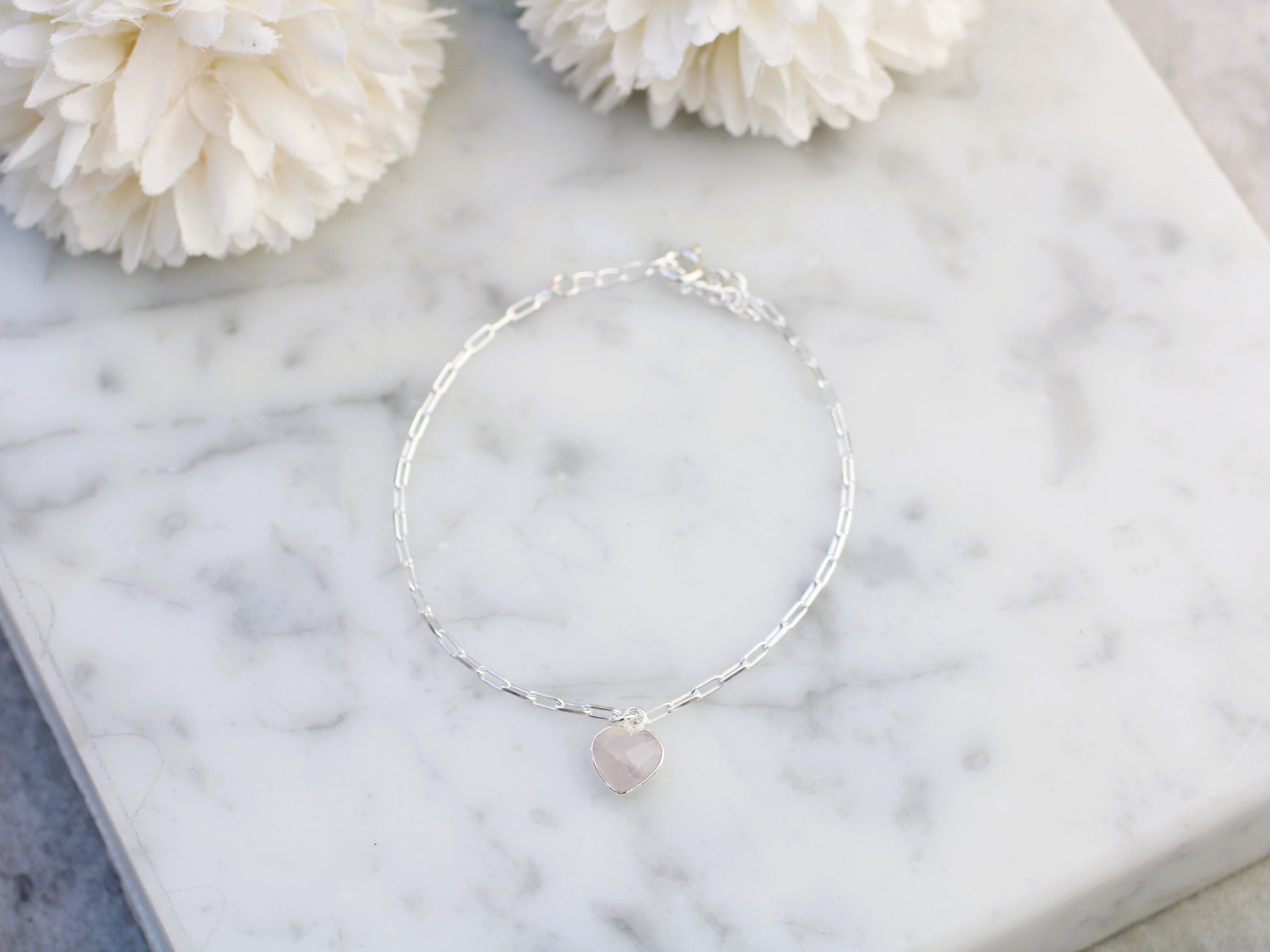 Rose quartz heart charm adjustable bracelet.