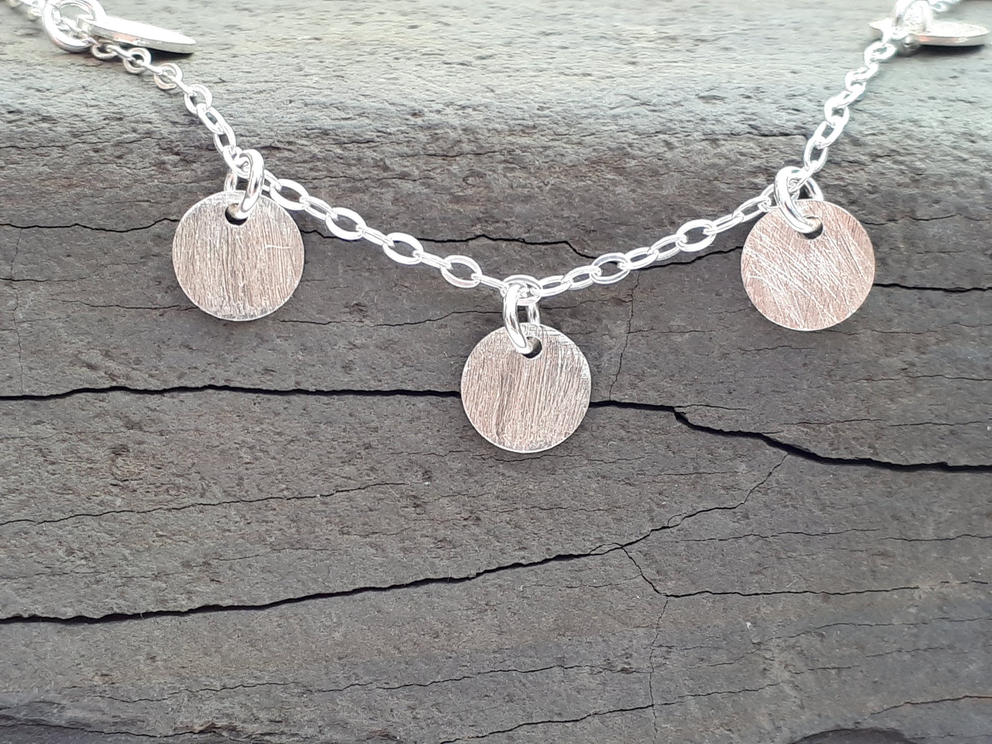 Silver disc necklace.