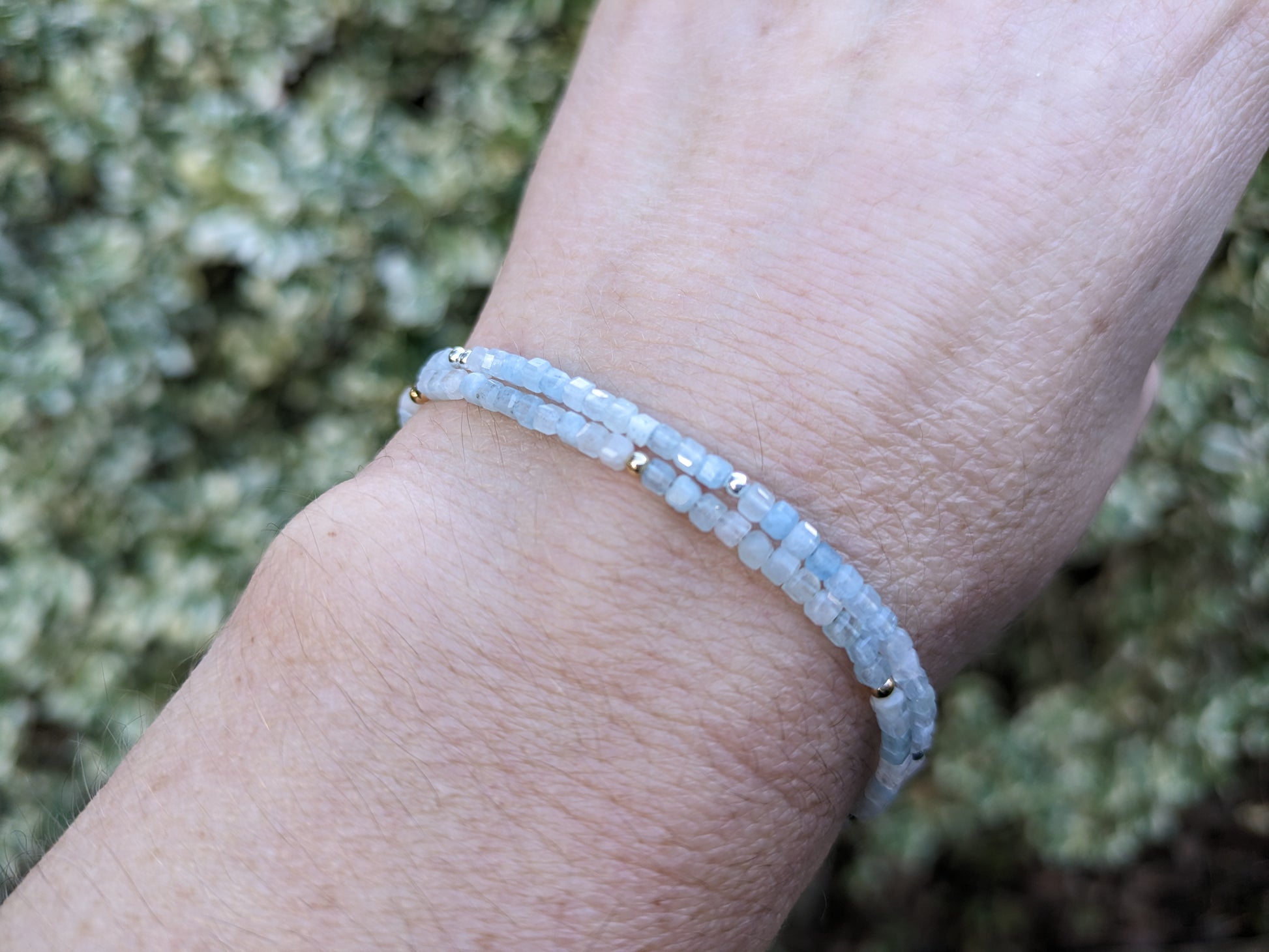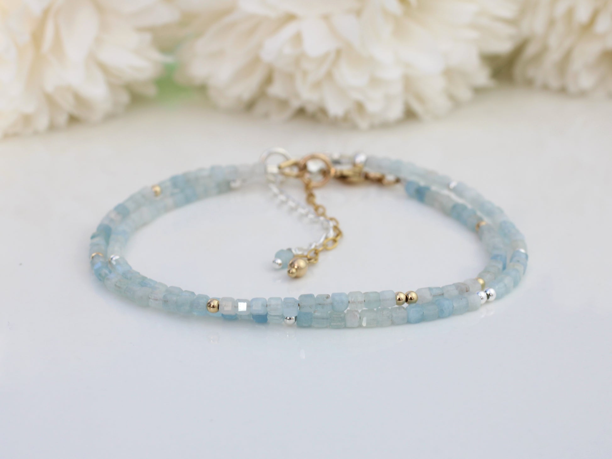 Elevate your style with our skinny aquamarine bracelet, available in stunning sterling silver. Upgrade your accessory game with this beautiful and versatile bracelet.