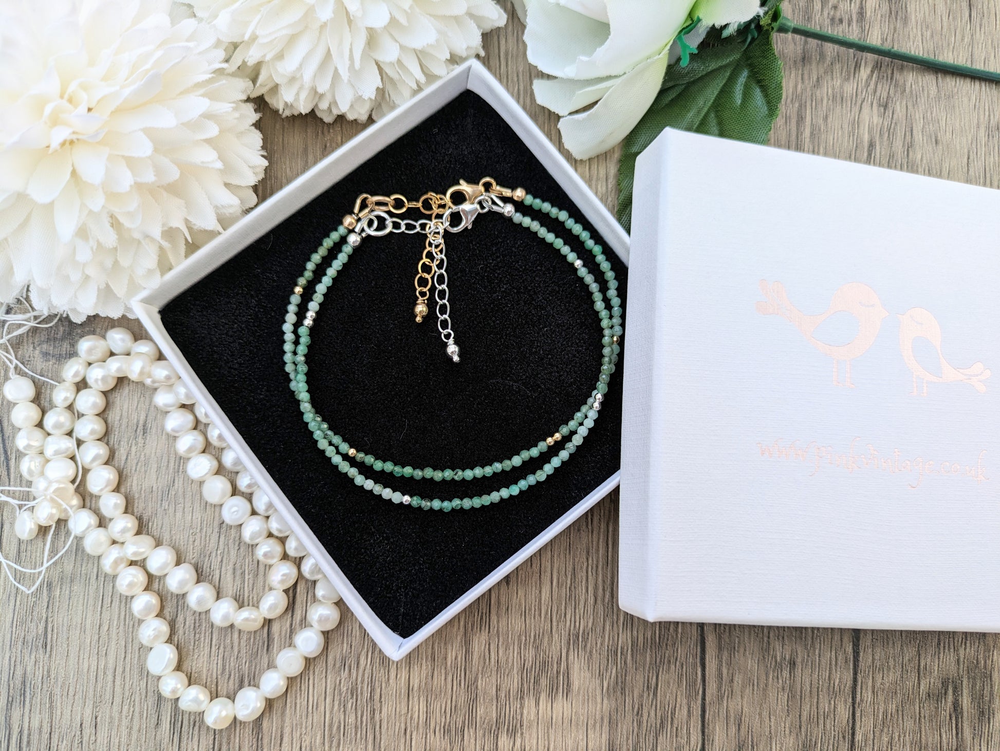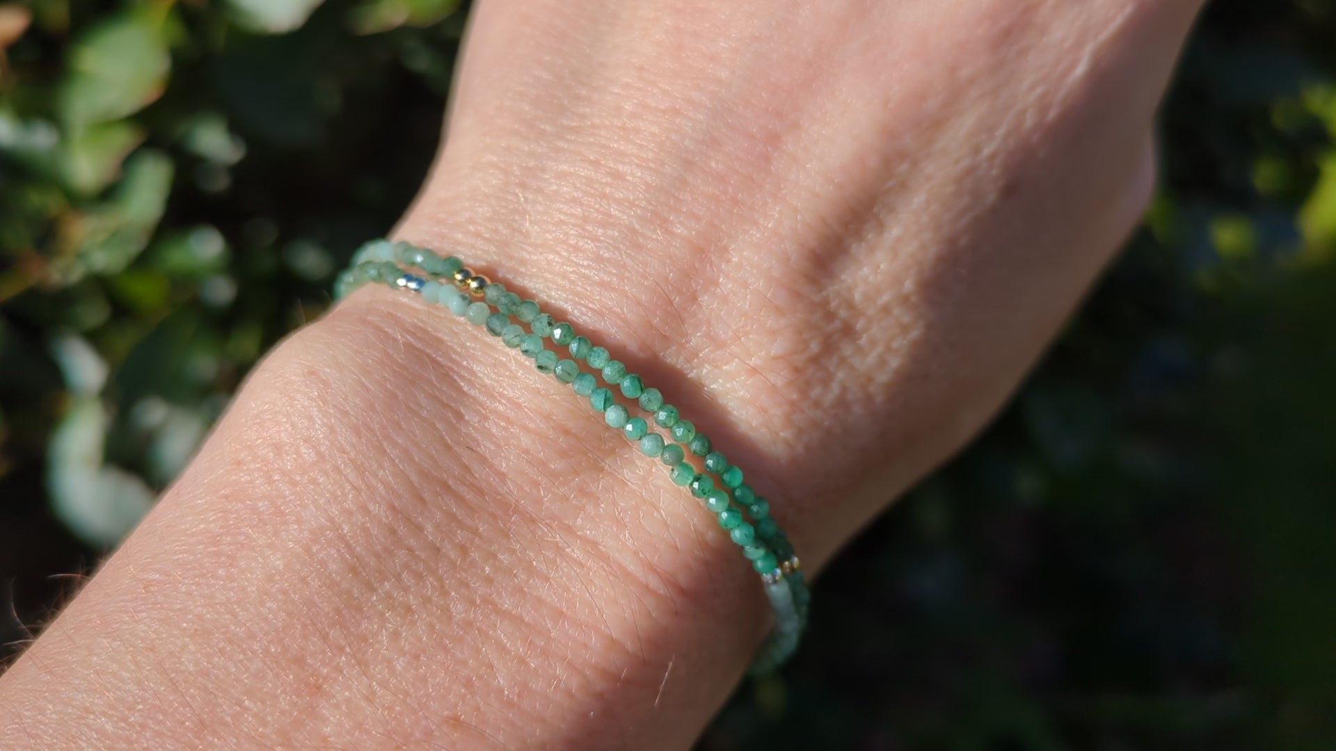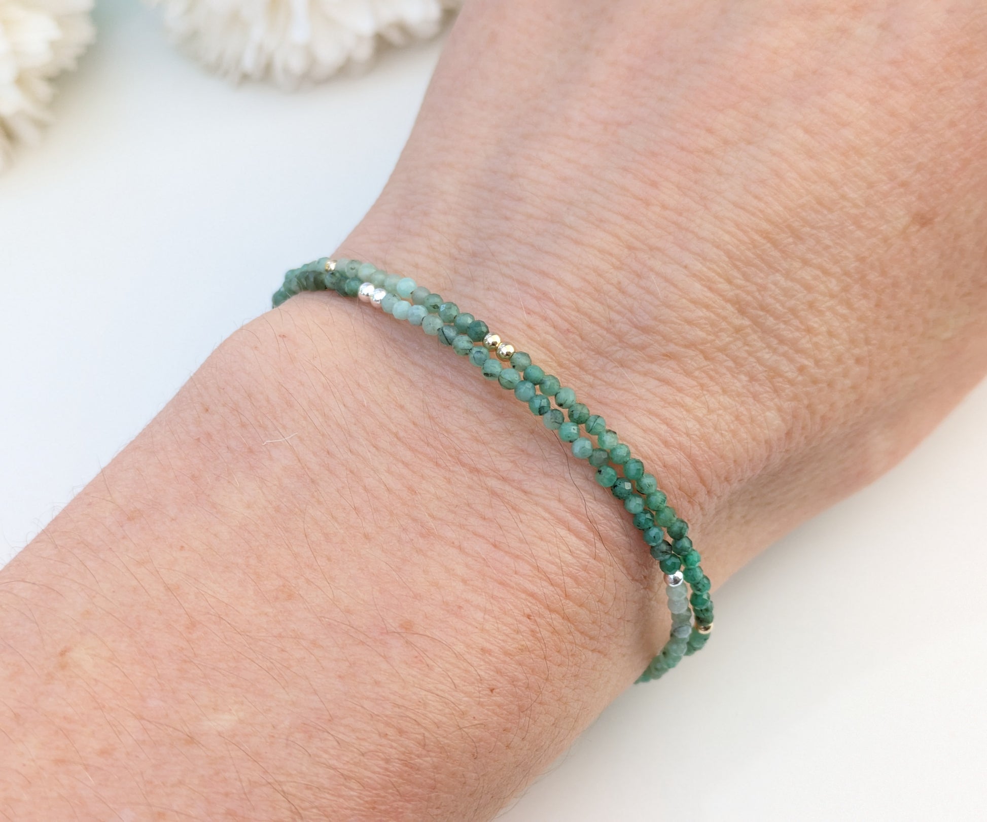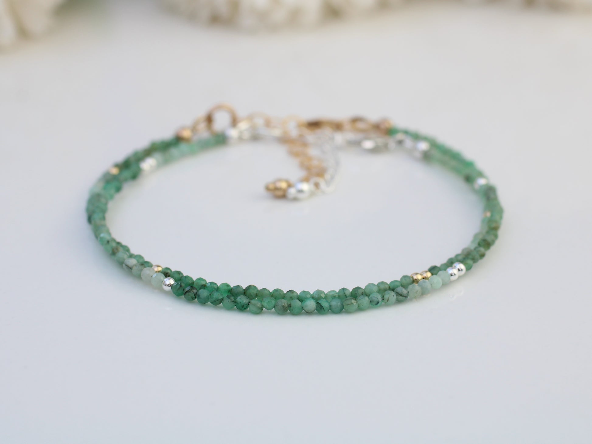 This delicate Skinny Emerald Bracelet will add a touch of elegance to any outfit. Made with natural emerald gemstones, it is available in both sterling silver and gold filled. Perfect for those born in May, this bracelet makes a thoughtful and meaningful gift.