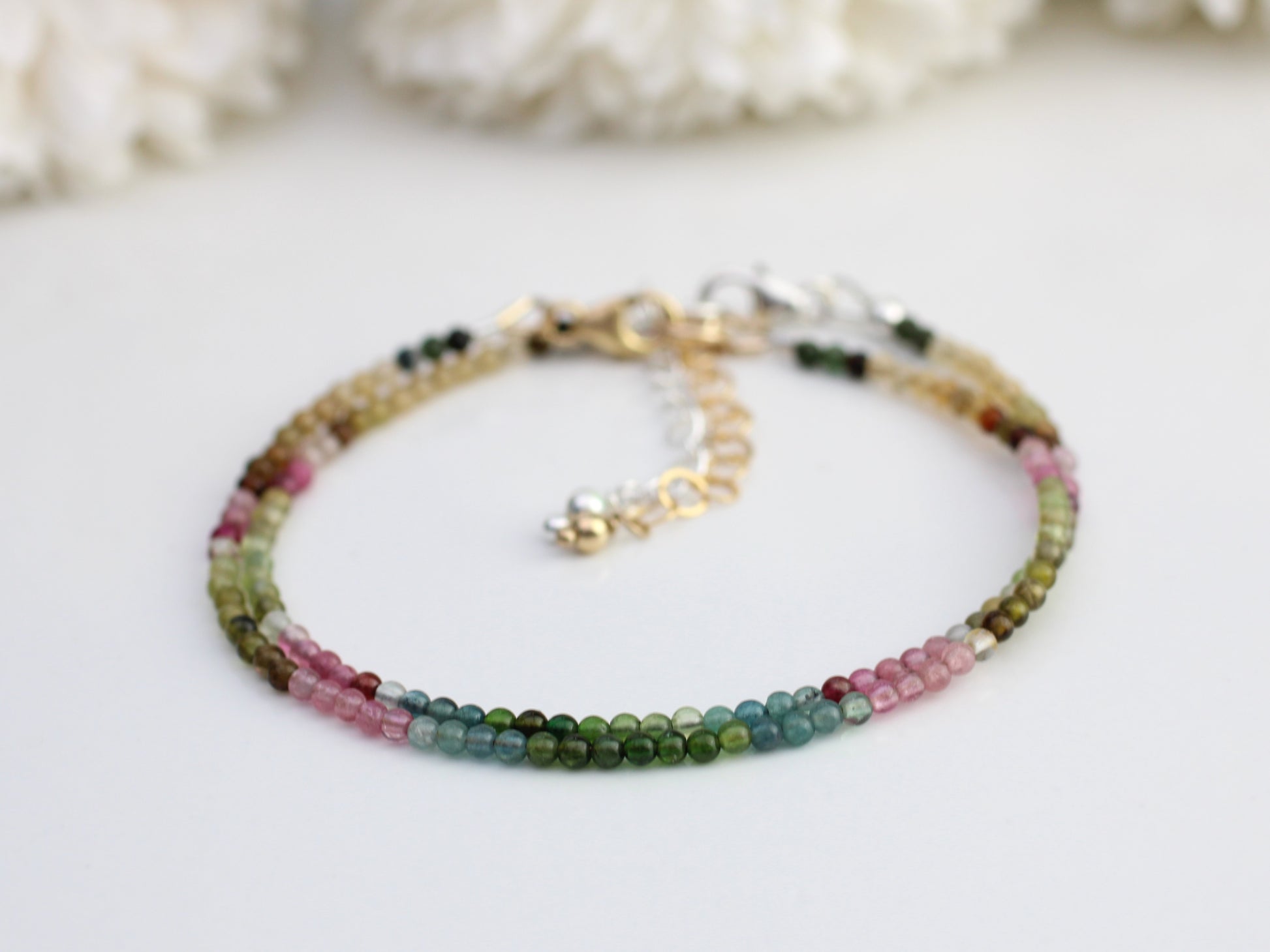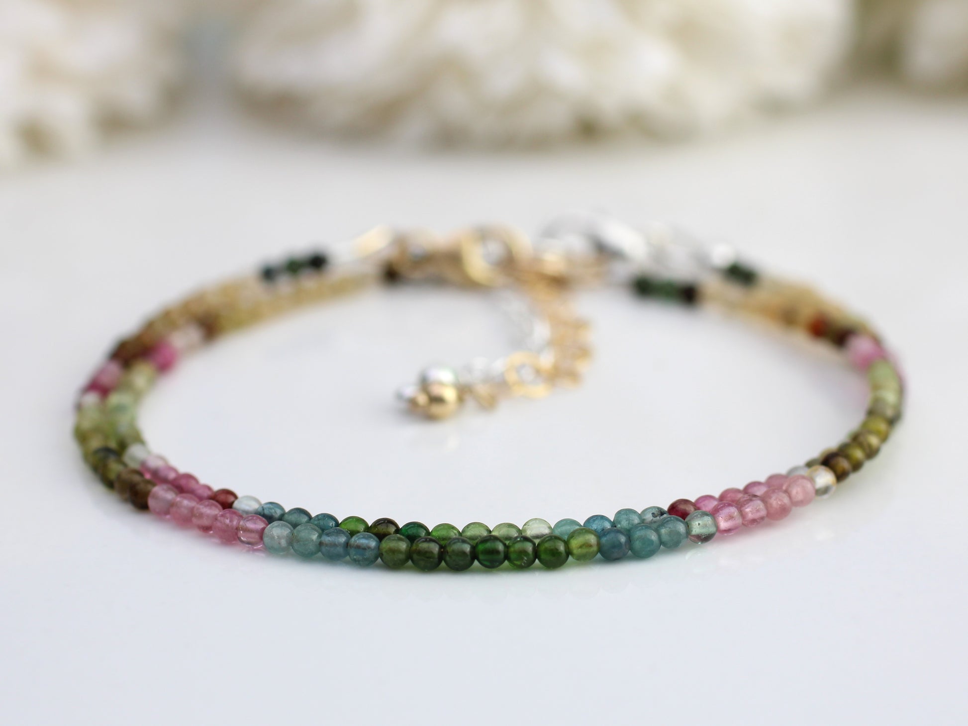 Skinny multi tourmaline bracelet in sterling silver or gold.