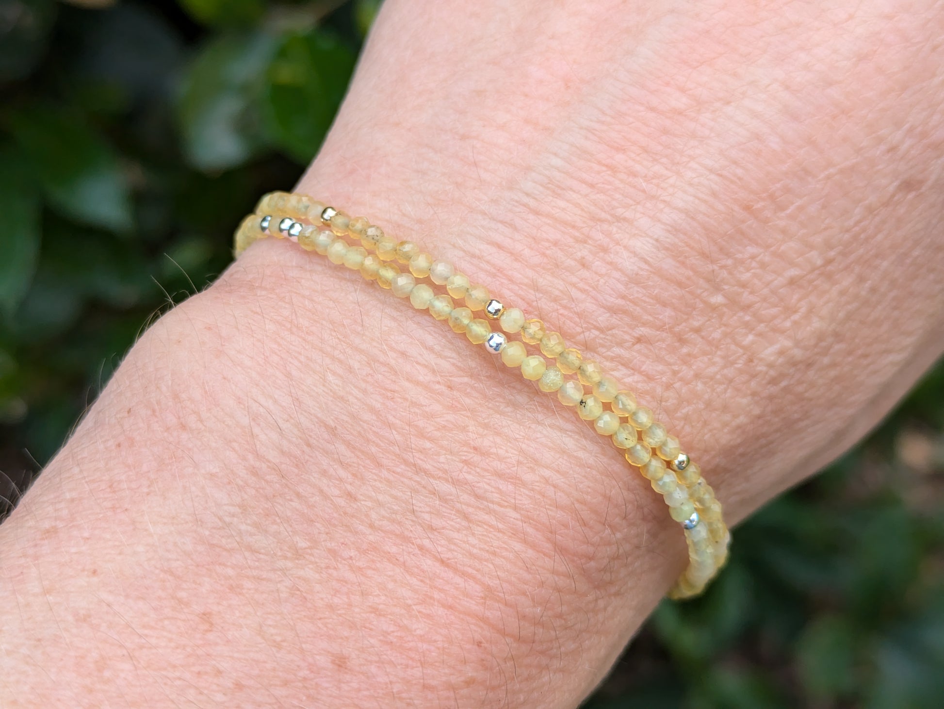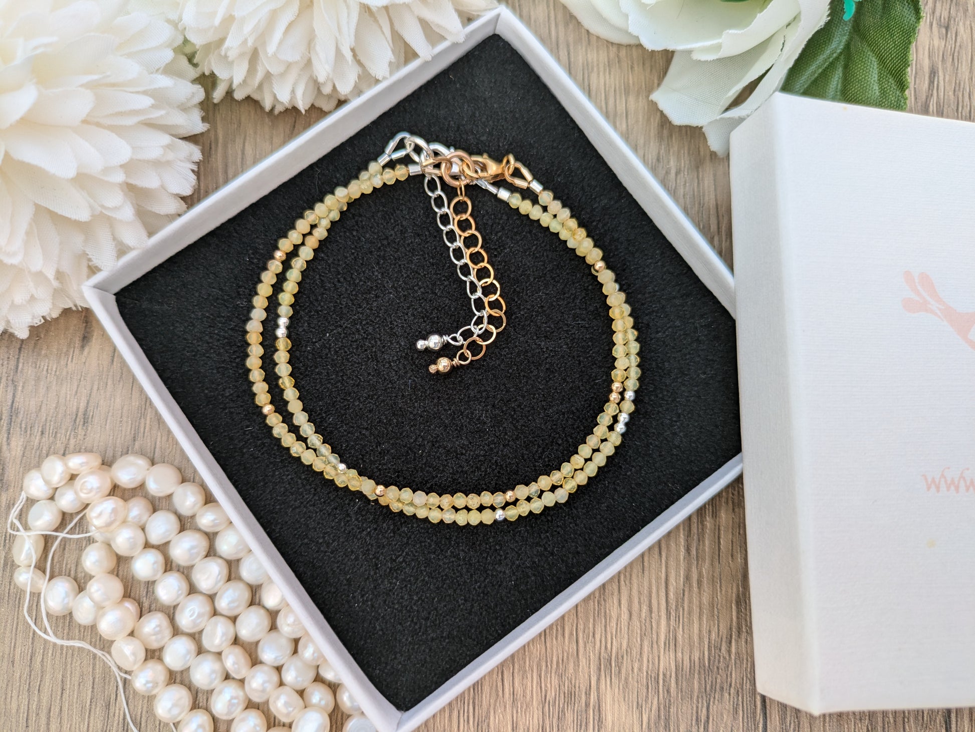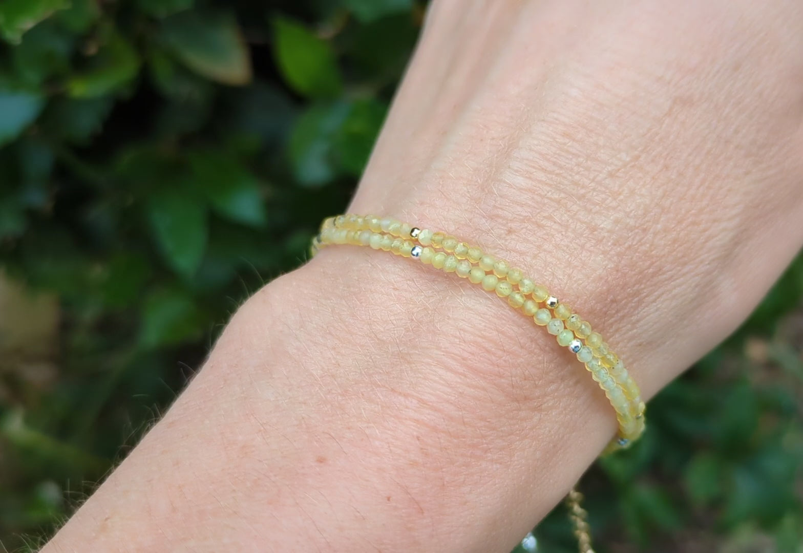 Experience the beauty and power of our Skinny Yellow Opal Bracelet! Handmade with Grade AAA yellow opal gemstones, this bracelet shines in both silver and gold. As the October birthstone, it not only adds a vibrant touch to any outfit but also brings luck and creativity to its wearer. Elevate your style and spirit today!
