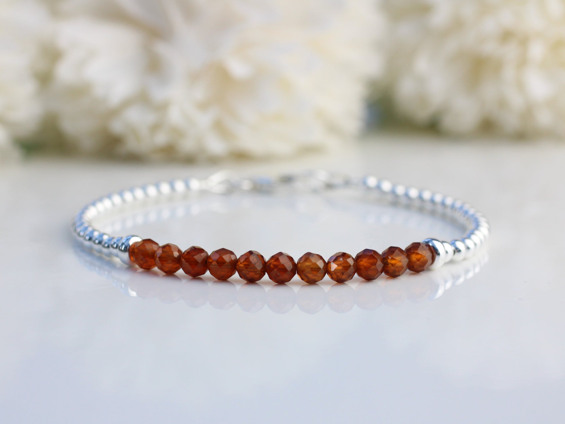 Celebrate a January birthday with our Spessartine garnet bracelet! Made with genuine sterling silver and natural garnet gemstones, this bracelet is both elegant and meaningful.