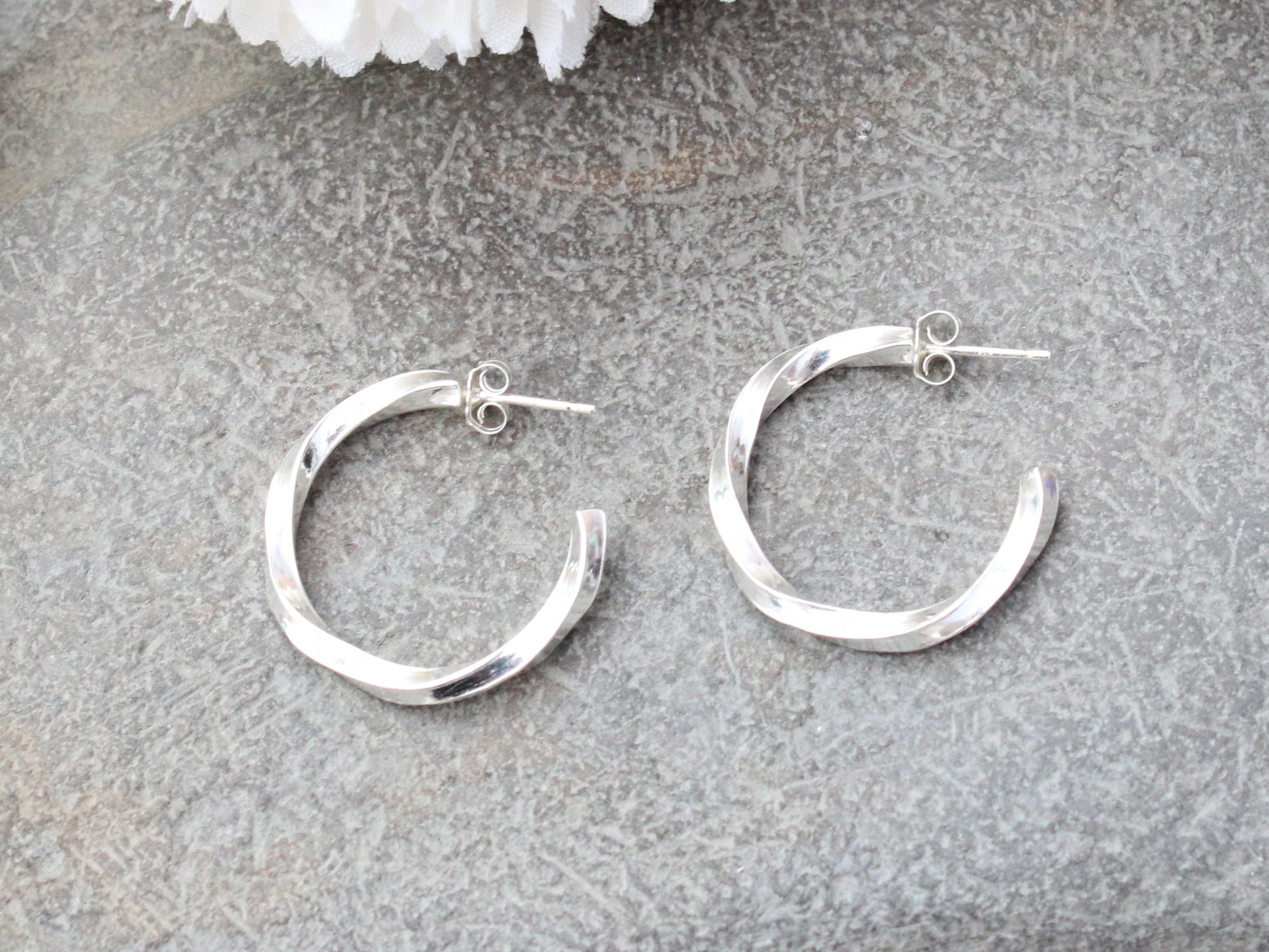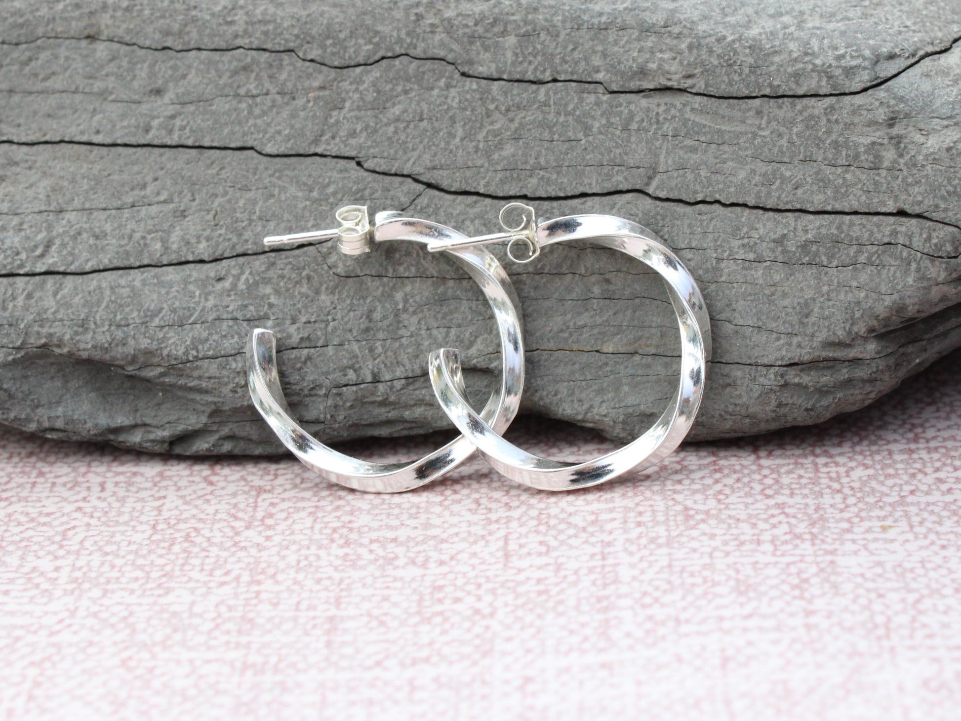 I have made these earrings out of sterling silver square wire which has been twisted by hand, they are 2 mm in width. These are solid sterling silver earrings.